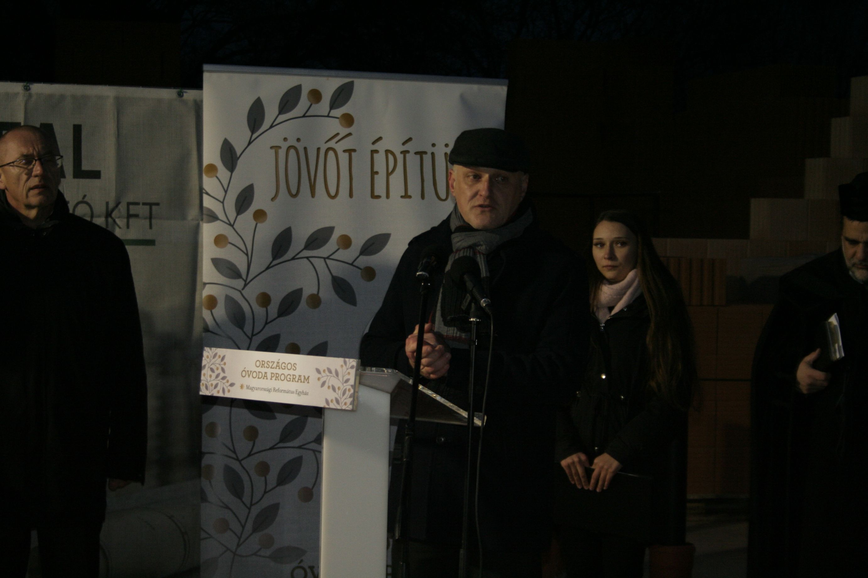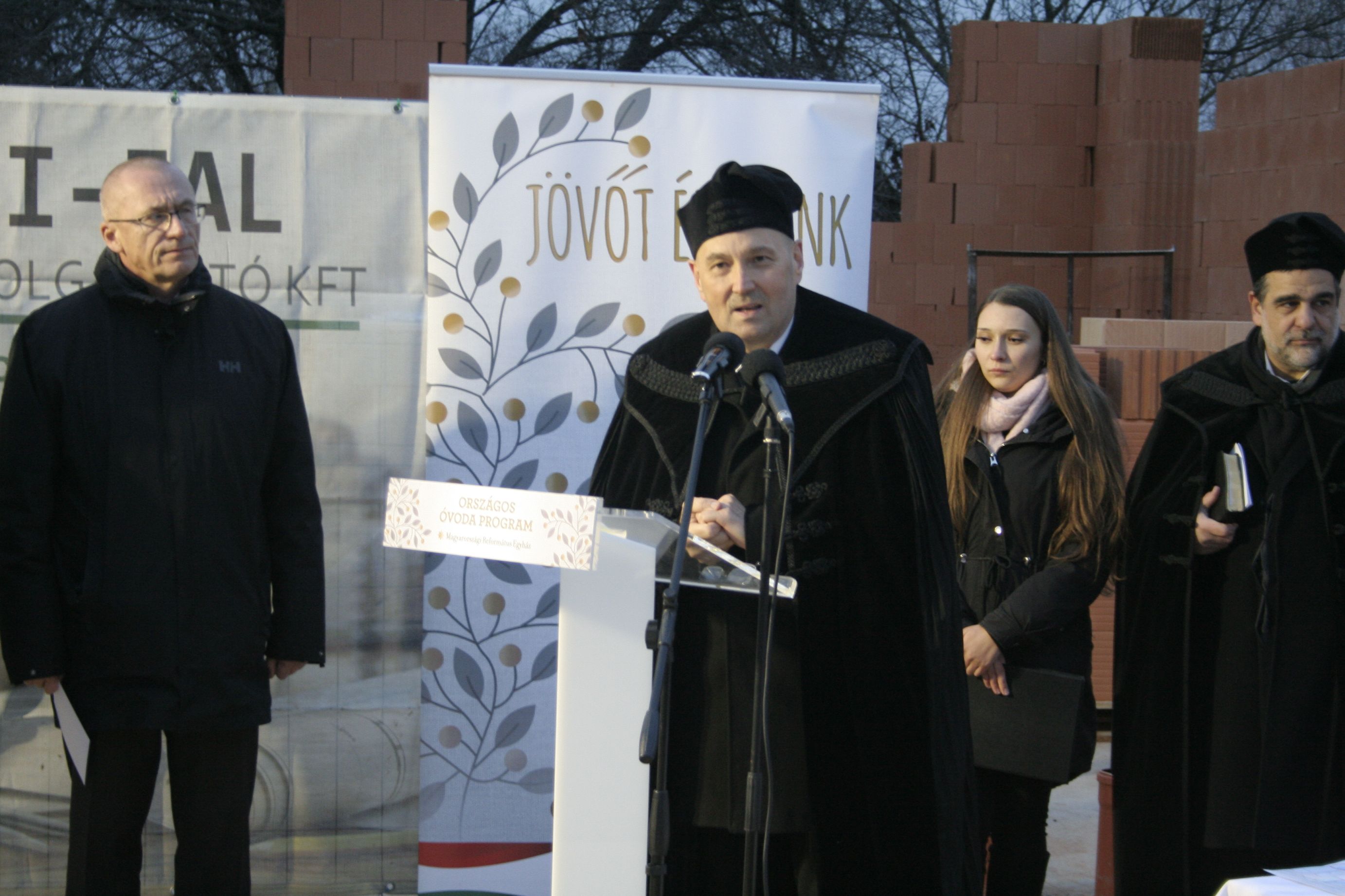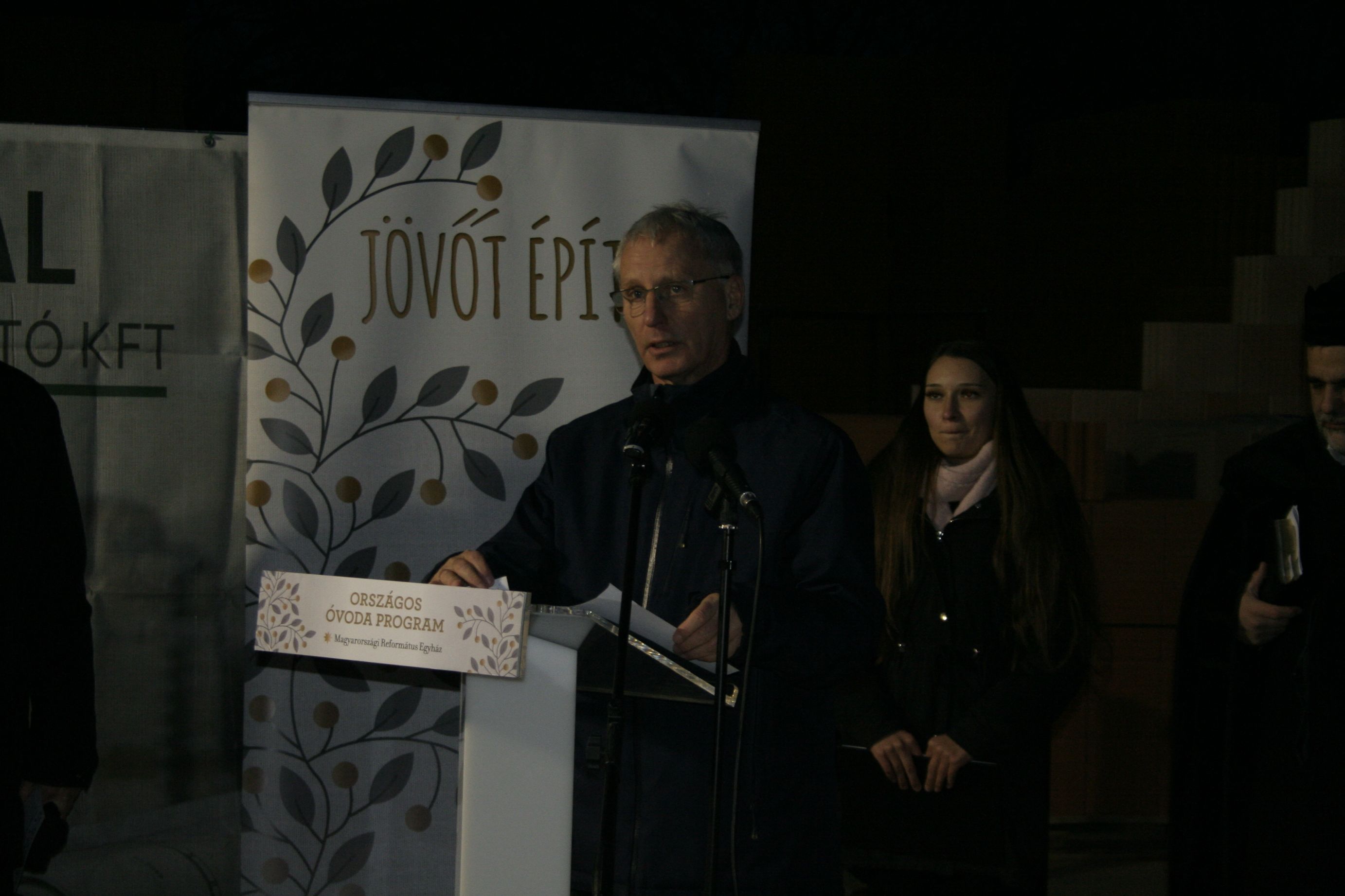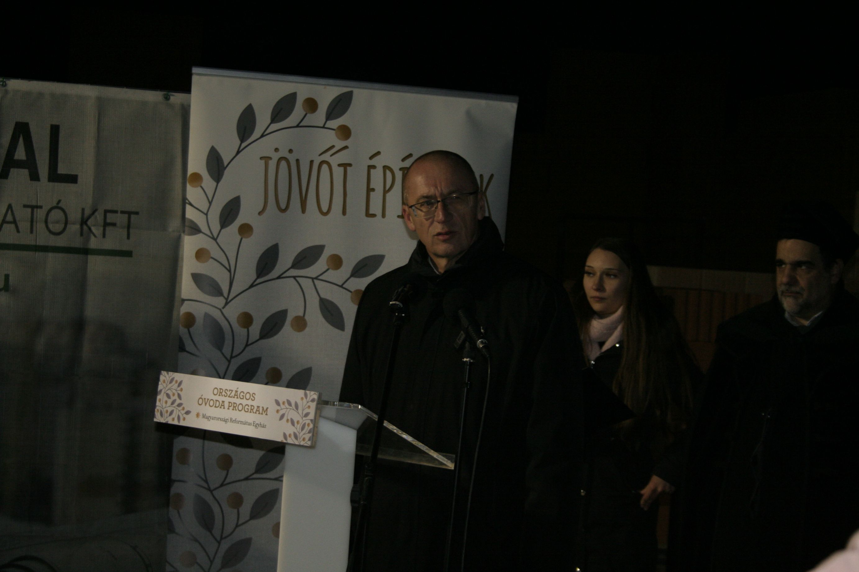 Soltész Miklós egyházi és nemzetiségi kapcsolatokért felelős államtitkár köszöntőjében azt mondta, hogy egy összefogás eredményeként lehetnek jelen ezen az ünnepségen. Kiemelte, 73 helyszínen, 60 településen újítanak meg óvodákat, mindez több mint 2000 óvodai férőhely megújítását és 3600 új férőhely kialakítását jelenti, melyben a Dunántúli Református Egyházkerület is részt vállalt.