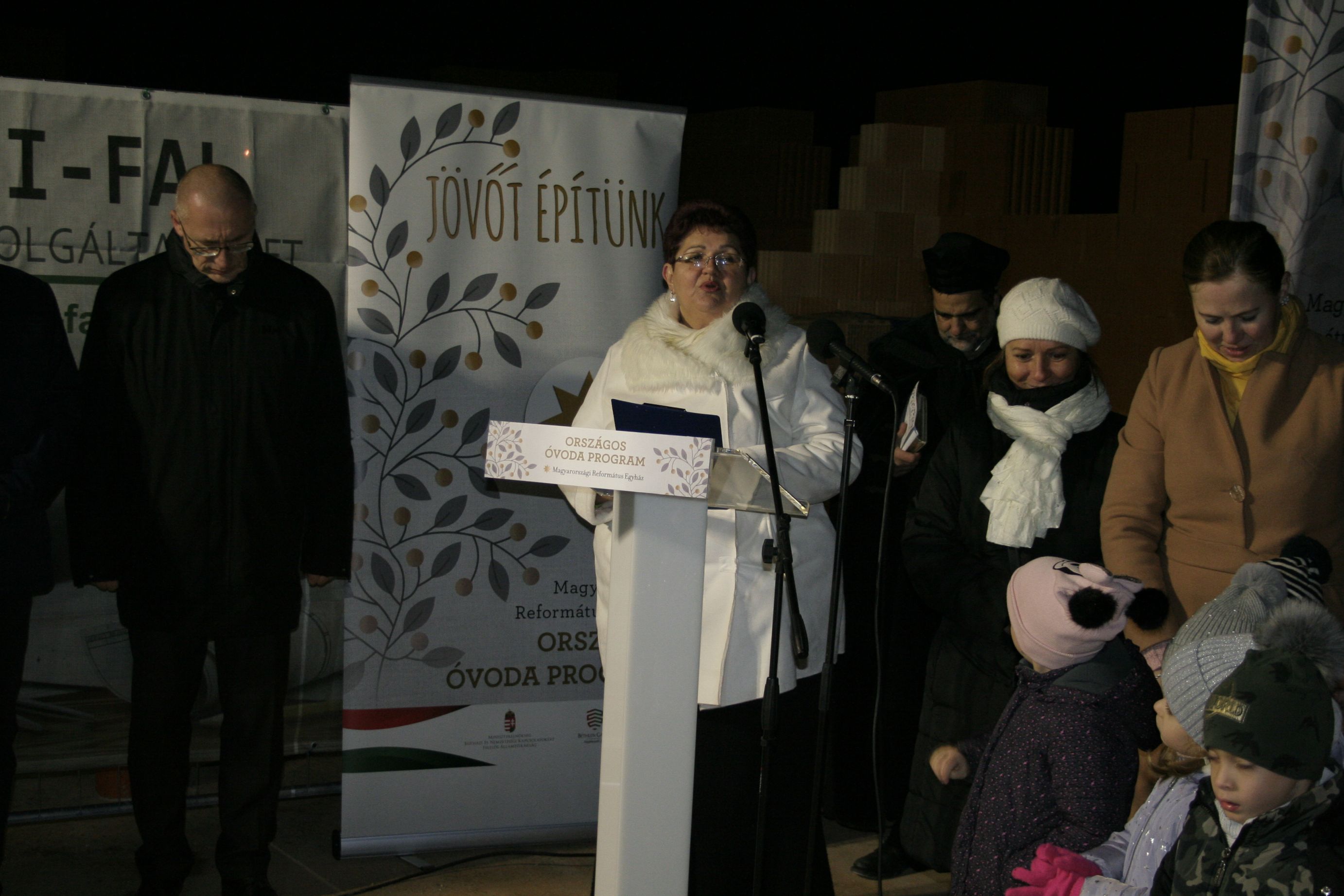 Tunnerné Buzás Éva, az Édenkert Pápai Református Óvoda vezetője is köszönetet mondott az új óvoda alapkövének letételének kapcsán.