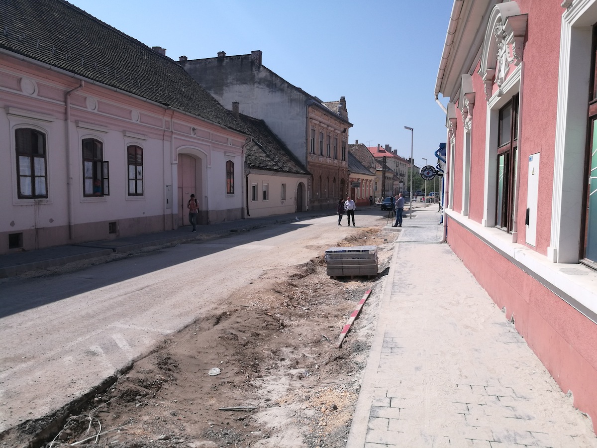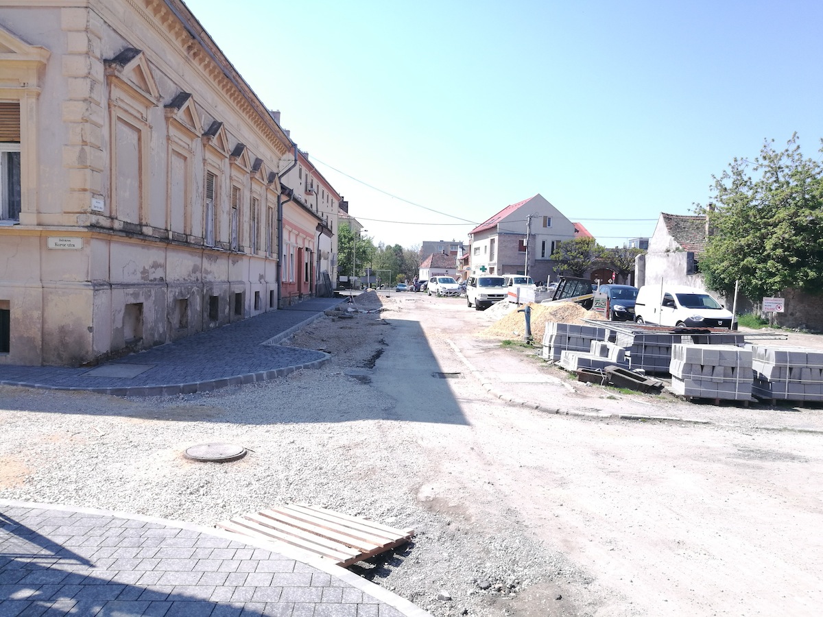 A belvárosi utca teljes körű újjáépítése késő ősszel vette kezdetét, ám a téli időjárás miatt szüneteltek a munkálatok, majd márciusban folytatódott az építkezés. Mára az utca minkét oldalán megépültek a járdák, egészen a Kuruc utcáig, a páros oldalon pedig a Bástya utcáig. Jelenleg a parkolók térkövezésének előkészítése zajlik, amint ezzel végeztek, folytatják a páratlan oldalon is a járdaépítést, illetve megkezdődhet az aszfaltozás előkészítése.