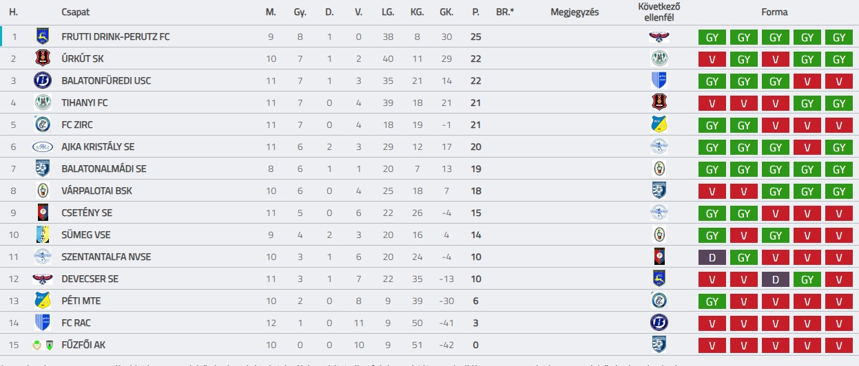 A pápai csapat a vármegyei labdarúgó-bajnokság 12. játéknapján a csoport sereghajtóját, a Fűzfői AK-t látta vendégül. A Perutz a tavalyi ezüstérmes ellen a 76. percben már 14-0-ra vezetett, amikor is az ellenfél létszáma sérülések miatt hét fő alá csökkent, így a játékvezető véget vetett az összecsapásnak - írja a klub közösségi oldala.