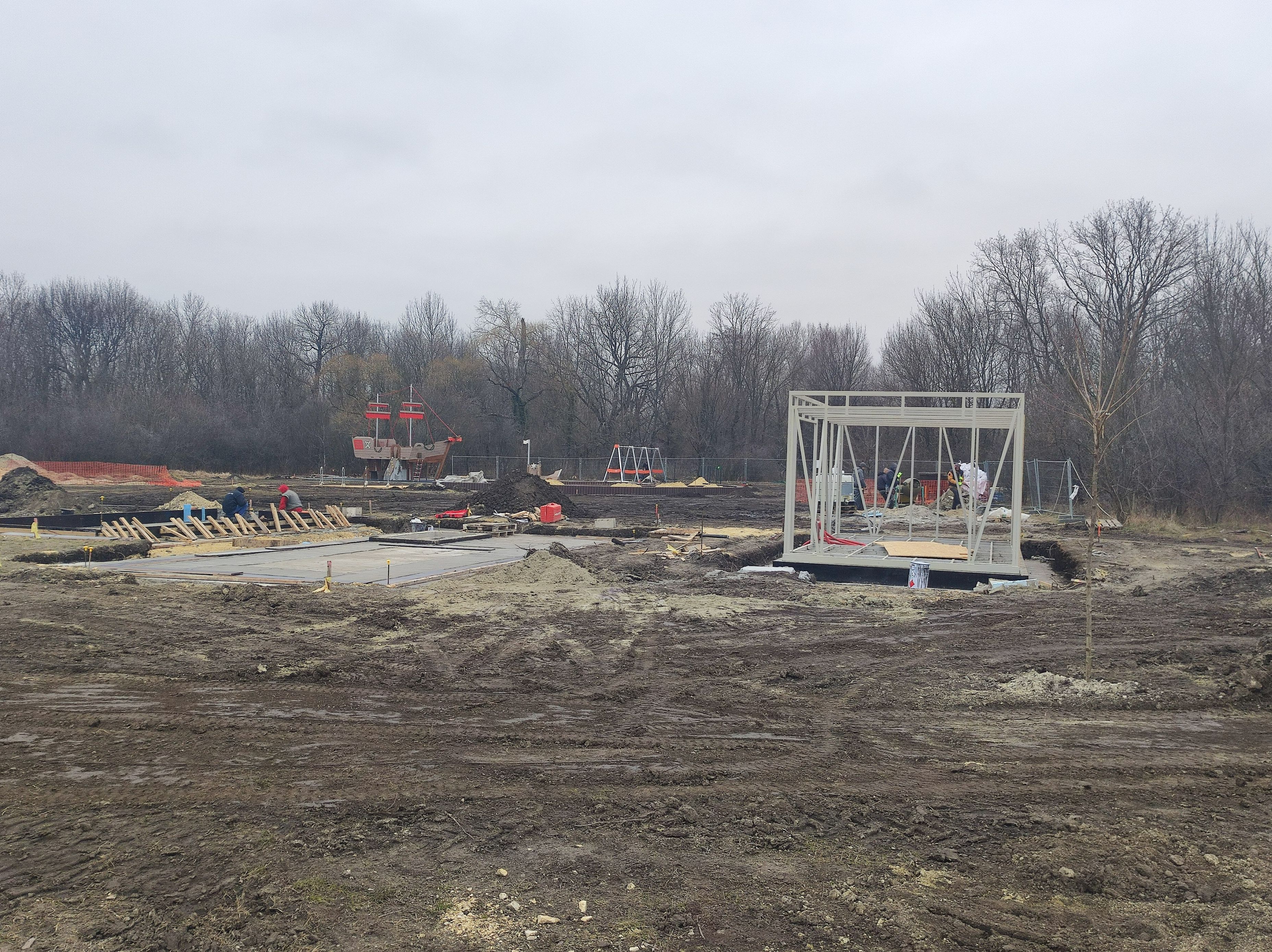 Egyébként a Külső-Várkert megújítása is jól halad, nemrég facsemetéket ültettek, épülnek a sétányok és a játszótér, valamint a kiszolgáló épület is.