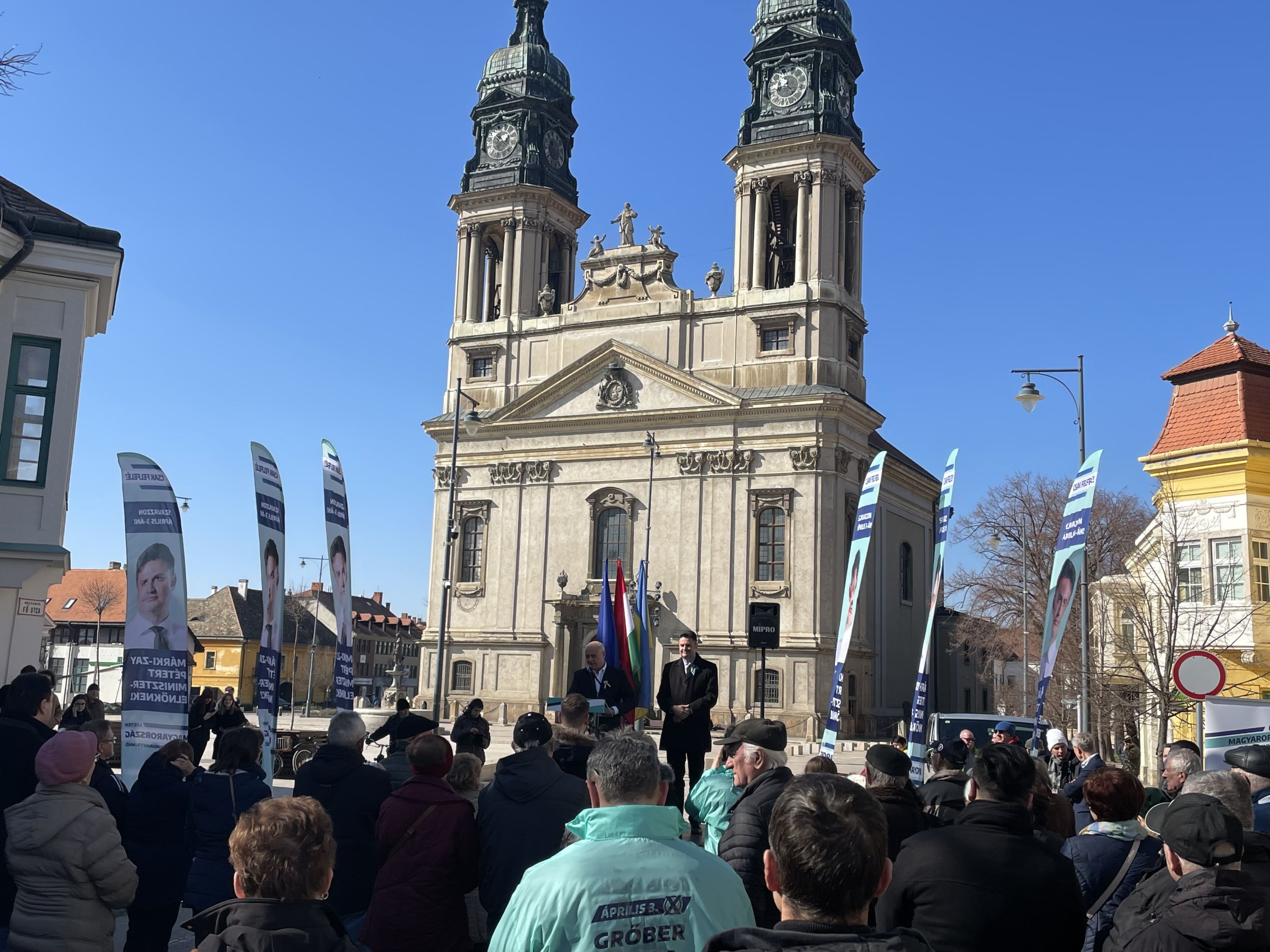 Közben Márki-Zay Péter is megérkezett, de Grőber Attila még folytatta az ígéreteket: