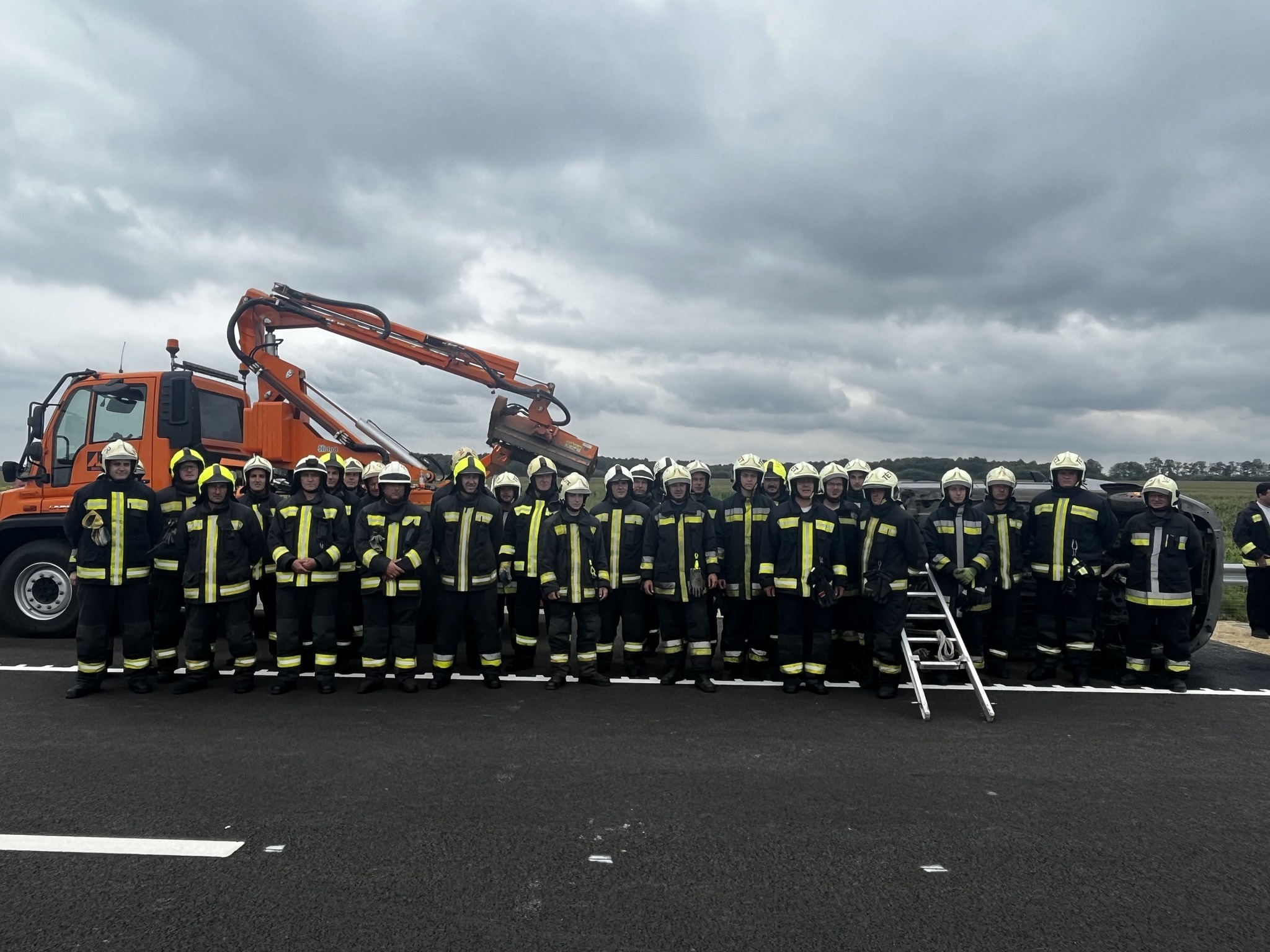 Először léphettek a friss aszfaltra a Veszprém és a Győr-Moson-Sopron vármegyei tűzoltók, hiszen a napokban a még átadásra váró, kétszer kétsávos 83-as főúton, a 44-es kilométerszelvénynél gyakorlatoztak, amely a térképen ugyan Győr-Moson-Sopron vármegyéhez tartozik, azonban Veszprém vármegye működési területe.