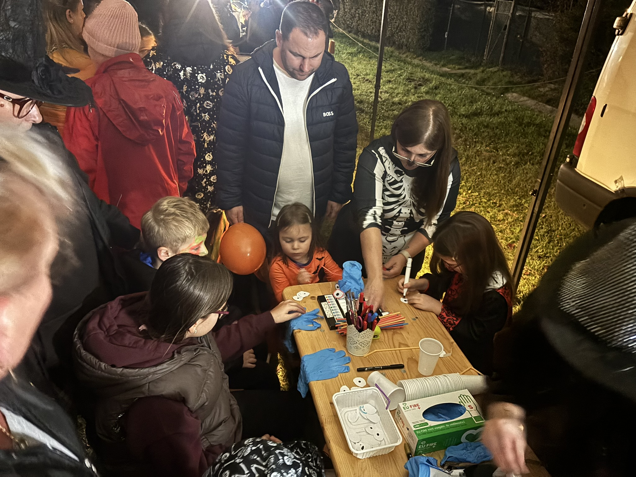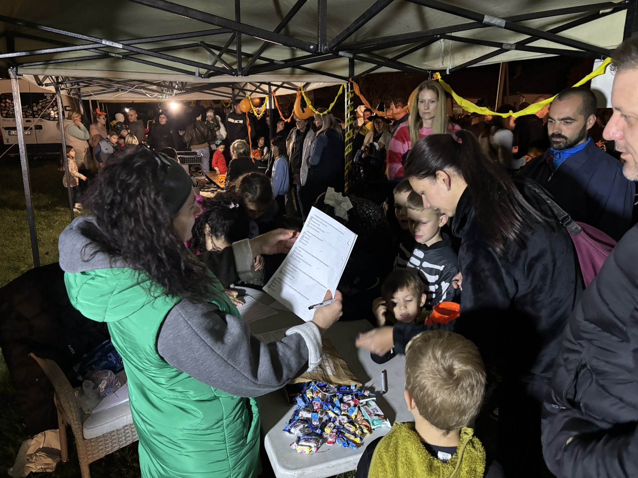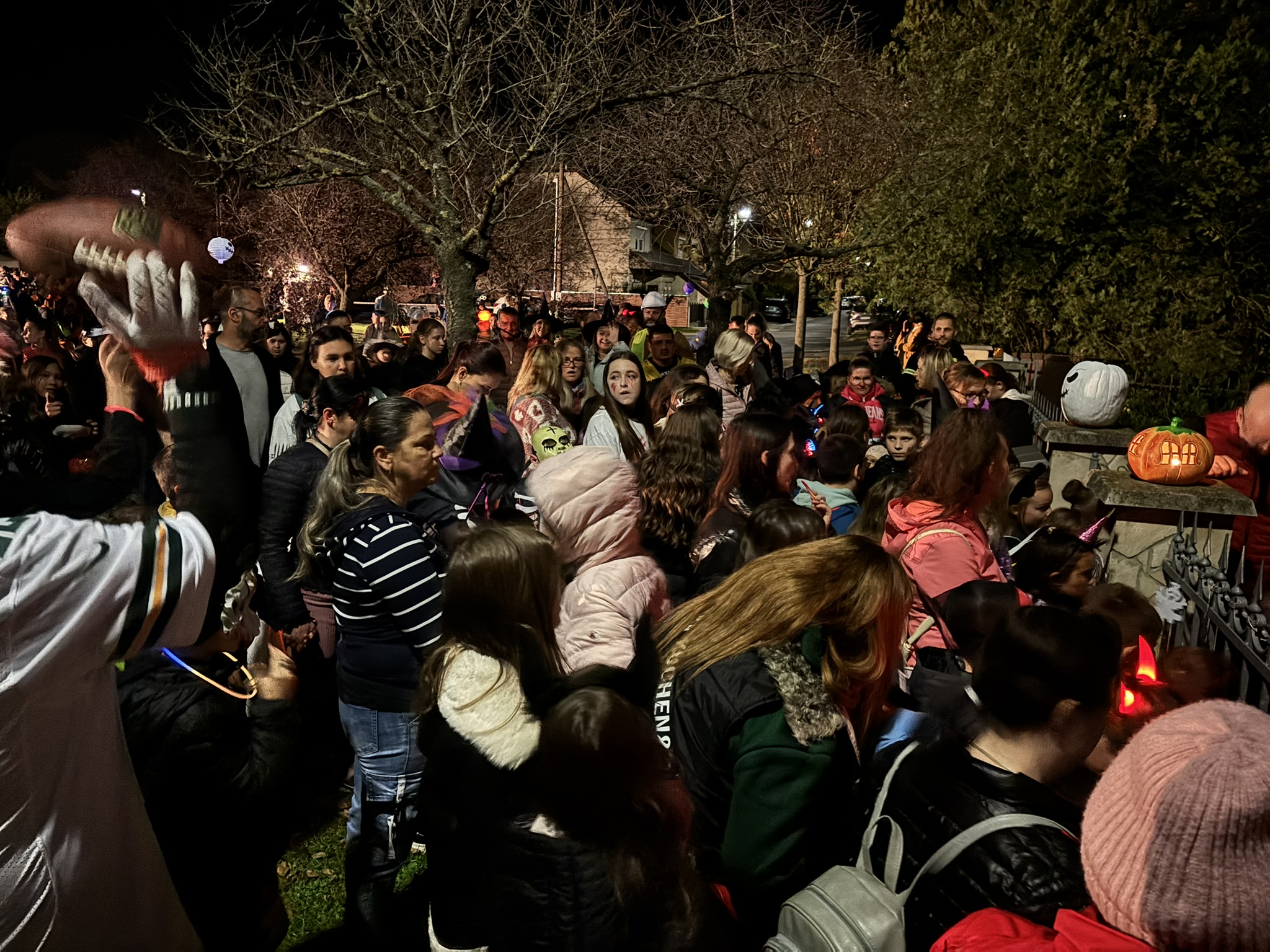 Szükség is volt a nagy helyre, hiszen rengeteg család gyűlt össze, ezúttal nemcsak a környékbeli utcákból, hanem a város legkülönbözőbb pontjairól érkezve. Zsíros kenyér, meleg tea, sütemények, arcfestés, fotópont, jelmezverseny, kézműveskedés, különböző játékok várták a gyermekeket, akik miután kijátszották magukat, felkerekedhettek és a kezdeményezéshez csatlakozott házaknál csokit vagy csalunk játékban sok-sok finom édességhez juthattak.