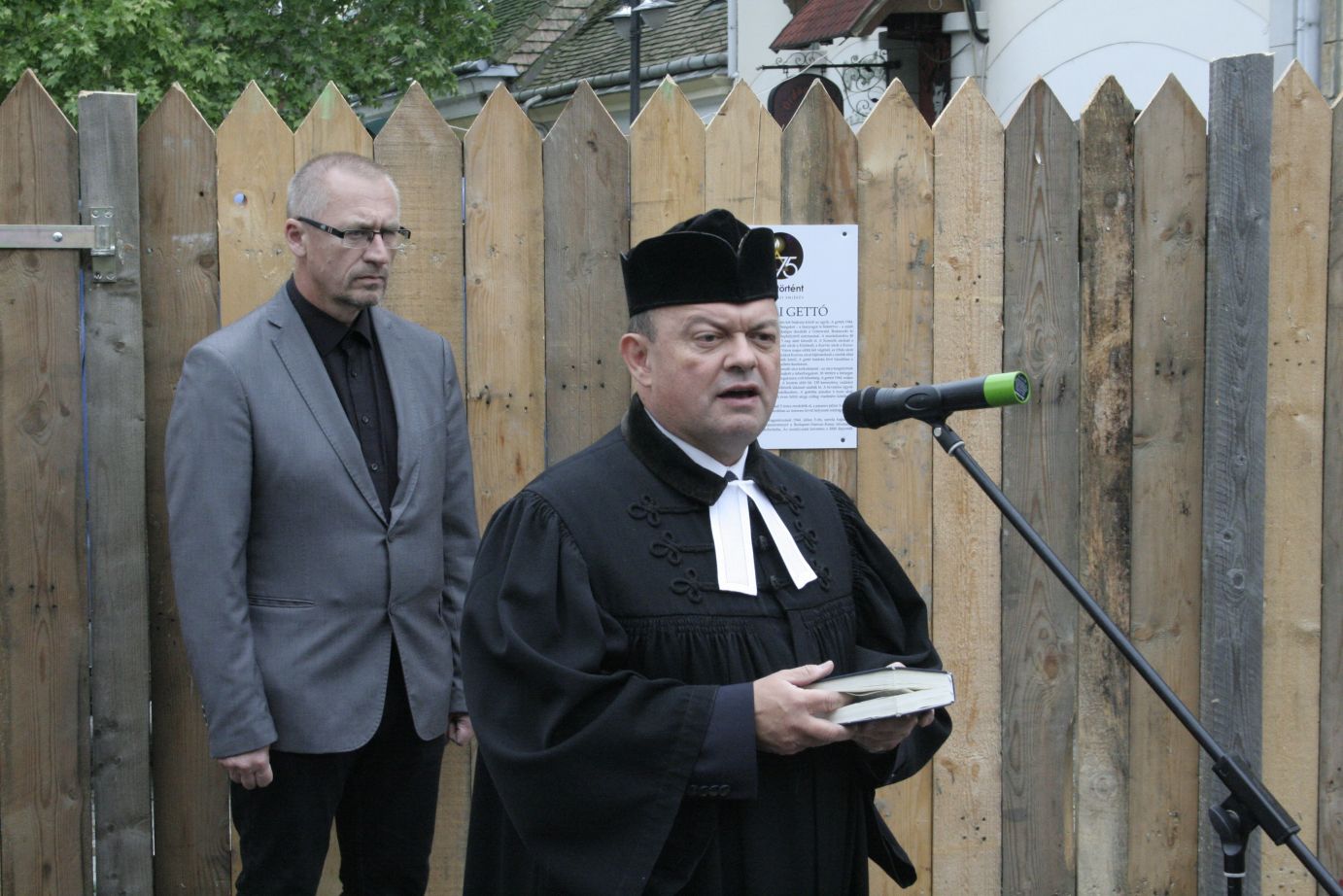 A városvezető felidézte, a 18. század közepén telepedtek le Pápán az első zsidó családok, akik megsokasodtak, pápaiak lettek és a többi pápaival együtt lakták be a várost. Együtt dolgoztak, örültek és harcoltak is a városért, a hazáért. - Aztán ennek az időnek vége lett és újra az elkülönülés lett az osztályrészük, újra egy nem csak szimbolikus, hanem valóságos kerítés másik oldalán találták magukat. 75 éve, pont ezen a napon ez az ajtó bezárult - mondta a polgármester.