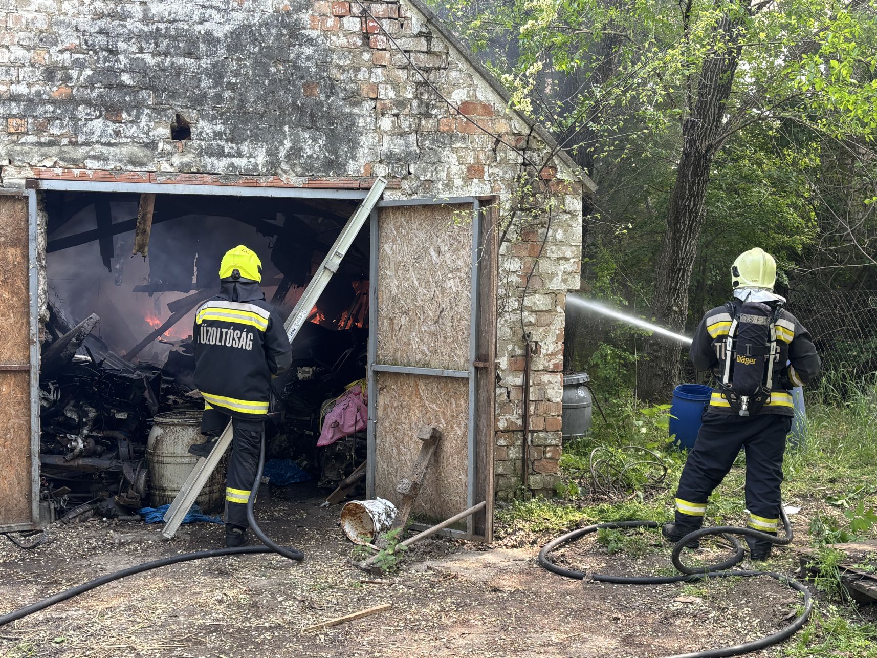 A Pápához tartozó Mátyusháza-pusztán kapott lángra egy melléképület, amelyben autóalkatrészeket tároltak. Több közeli autóroncs és traktorgumi is lángolt, a tűzoltók több vízsugárral vonultak a helyszínre. Nehezítette az oltást, hogy a környéken nincs tűzcsap, ezért csak a járművekben lévő vízzel tudták felvenni a harcot a lángokkal a tűzoltók, akik Ajkáról is kaptak segítséget.