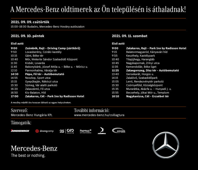 Szeptember 10-én mintegy száz autóval indul útjára a Mercedes-Benz Classic Csillagtúra mezőnye, mely guruló múzeumként a márka 135 éves múltja előtt tiszteleg.