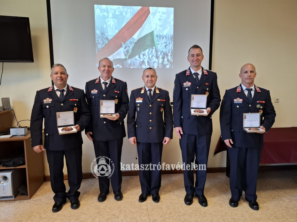 A Veszprém Vármegyei Katasztrófavédelmi Igazgatóság ünnepi állománygyűlésen emlékezett meg az 1956 októberében történt eseményekről, a magyar hősök korszakalkotó cselekedeteiről. A mártírok emléke előtti tisztelgés mellett elismerések átadására is sor került a rendezvényen.