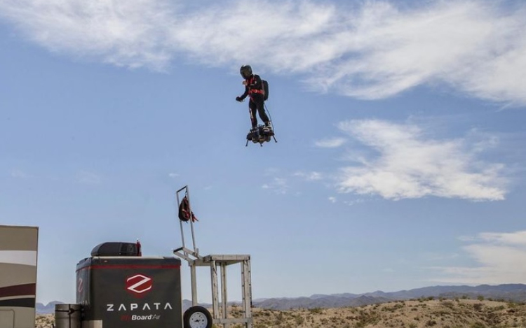 A légdeszka, vagyis flyboard, amelyet Zapata maga tervezett, épített és vezet, egyfajta sugárhajtású szörfdeszka, amelyet négy mikroturbina hajt, és akár óránkénti 140 kilométeres sebességre is képes.