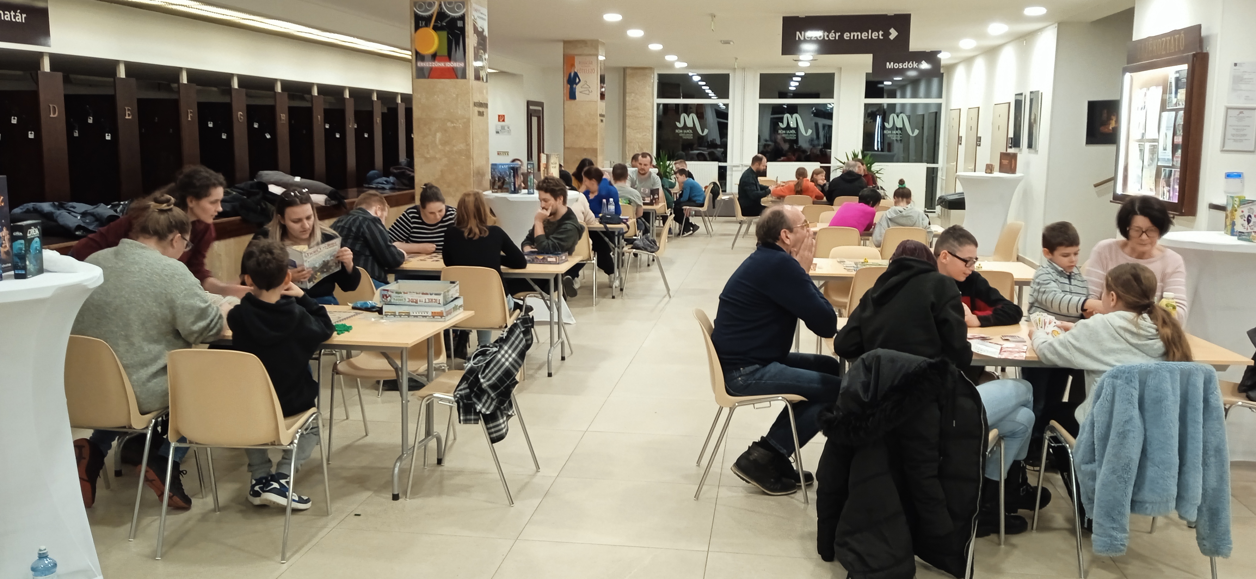 Ódor Richárd, Présing Zoltán és csapata jóvoltából a programon csaknem 50-féle játékkal ismerkedhettek meg a látogatók, köztük a legnépszerűbb, akár díjnyertes táblás, kocka- és kártyajátékokkal, ki lehetett próbálni például a Cascadia, Tiltott sivatag, Tiltott dzsungel, Santorini, Kingdomino, Pandemic, Dixit, Imagine, Robbanó cicák, Igen…? vagy a Fedőnevek elnevezésű játékokat. Benépesült a színházépület aulája: volt, aki csak nézelődött és karácsonyi ajándékötleteket gyűjtött, de volt olyan is, aki több játékban is elmerült a hosszú délután során. A szervezők a kisebbekre is gondoltak, a gyereksarokban 7 éves kortól ajánlott táblás- és kártyajátékok mellé ülhettek le az érdeklődők.