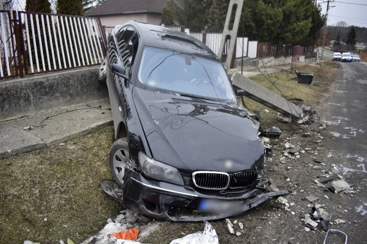 A kocsi kidöntött egy villanyoszlopot, amely pont a vezetőoldalnál állt bele az autóba. A sofőr megúszta.