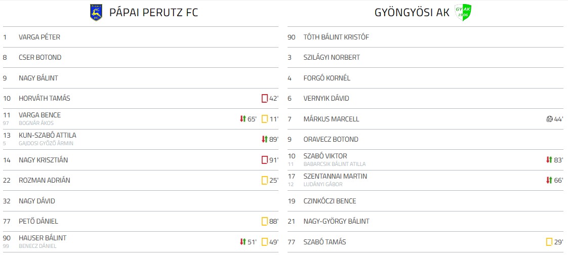 Nehéz helyzetben várhatta hát a folytatást a Pápa, amely hősiesen küzdött a második játékrészben, Vargának több bravúrt is be kellett mutatnia, ugyanakkor a gyöngyösiek hálóőre sem maradt adós, a Perutz ugyanis kétszer is helyzetbe került, de nem sikerült értékesíteni a lehetőségeket. A hármas sípszó előtt nem sokkal Nagy Krisztián szabálytalanságát látta kiállítást érdemlőnek a bíró, így a Pápa kilenc emberrel fejezte be a találkozót.