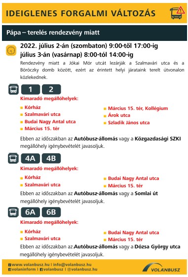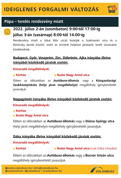 A hétvégén rendezvény miatt több ideiglenes változás is várható a helyi és helyközi tömegközlekedésben.