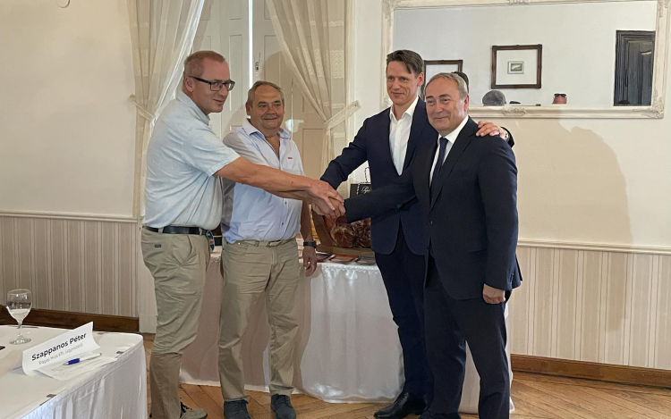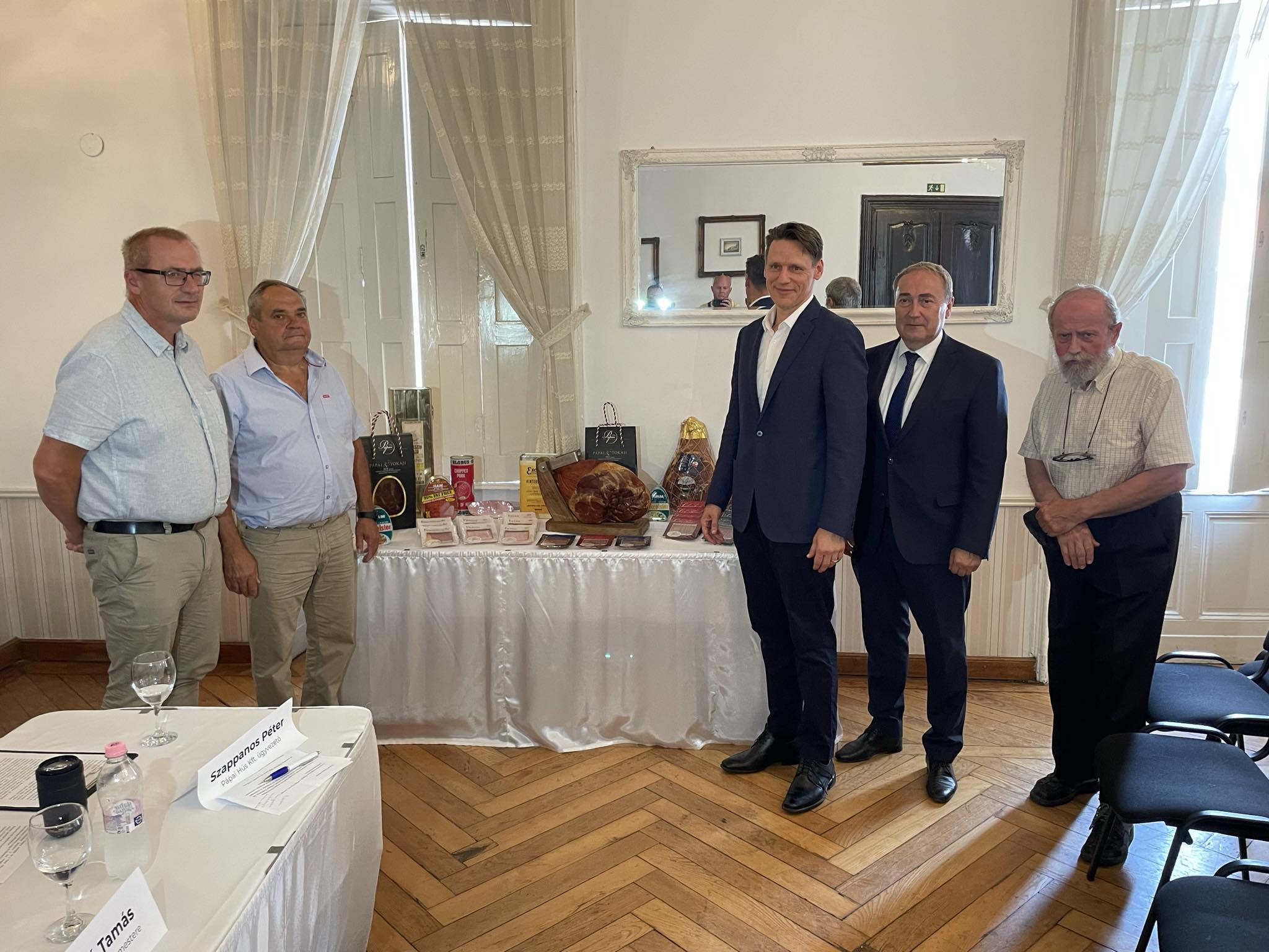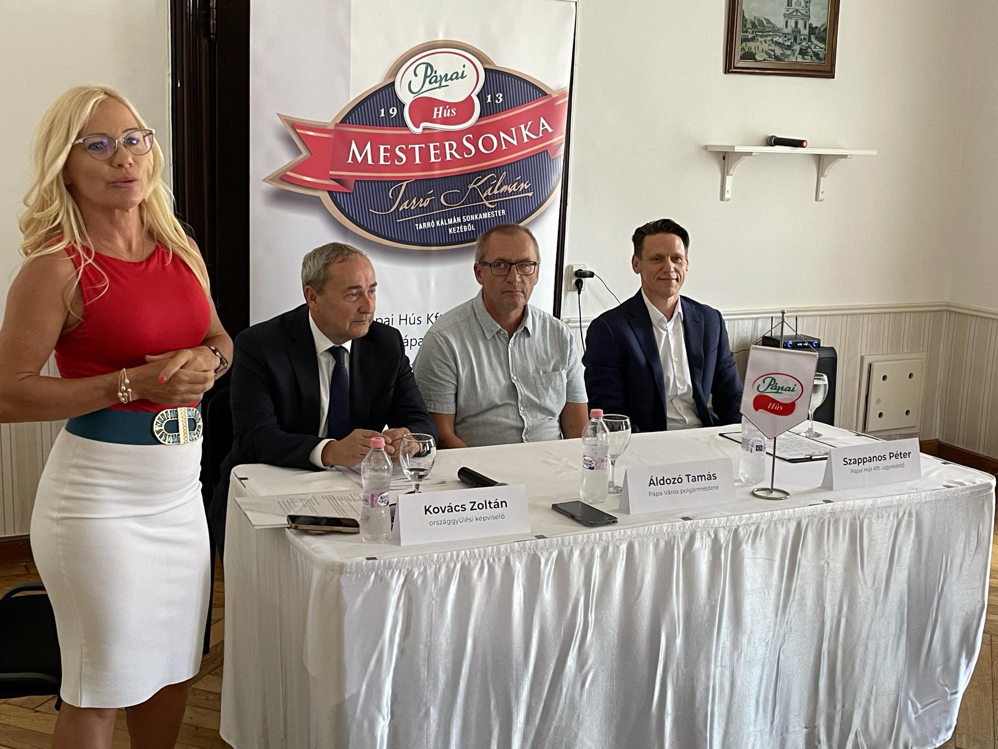 Az örömteli hírt ma délben ünnepélyes sajtótájékoztatón jelentette be a Pápai Hús Kft, amelyen részt vett Kovács Zoltán országgyűlési képviselő, Áldozó Tamás polgármester, Szappanos Péter ügyvezető, valamint Tarró Kálmán sonkamester.