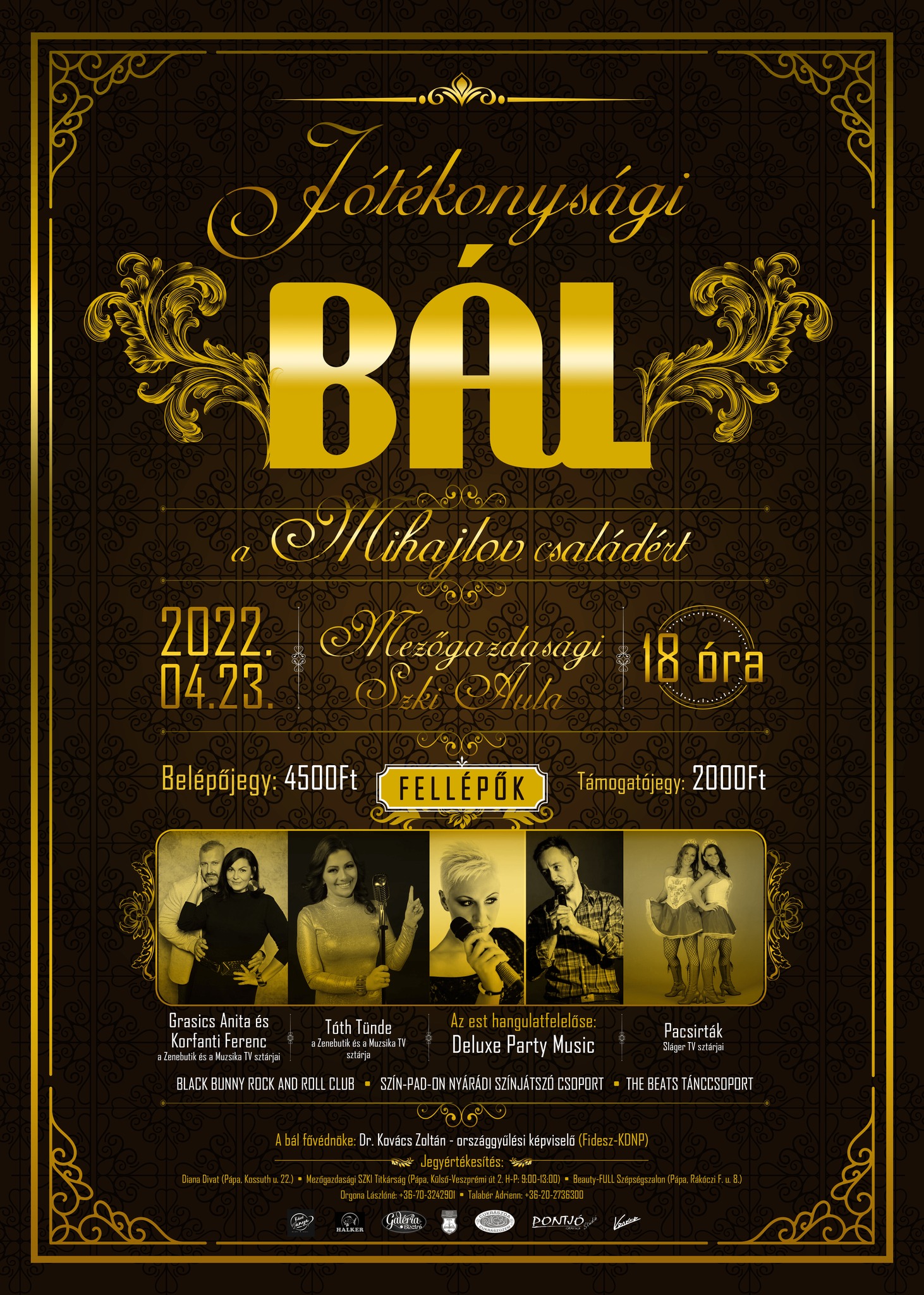 Az est fővédnöke dr. Kovács Zoltán országgyűlési képviselő lesz. Belépőjegyek még korlátozott számban kaphatók, de aki személyesen nem tud ott lenni, az támogató jegyet is vásárolhat.