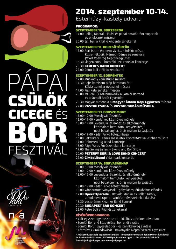Az évek óta egyre bővülő kínálattal megjelenő pápai bornapok idén is tartogat meglepetéseket. Remélhetőleg ezúttal az időjárás is kegyes lesz és újra remek hangulatban telik el a fesztivál öt napja.