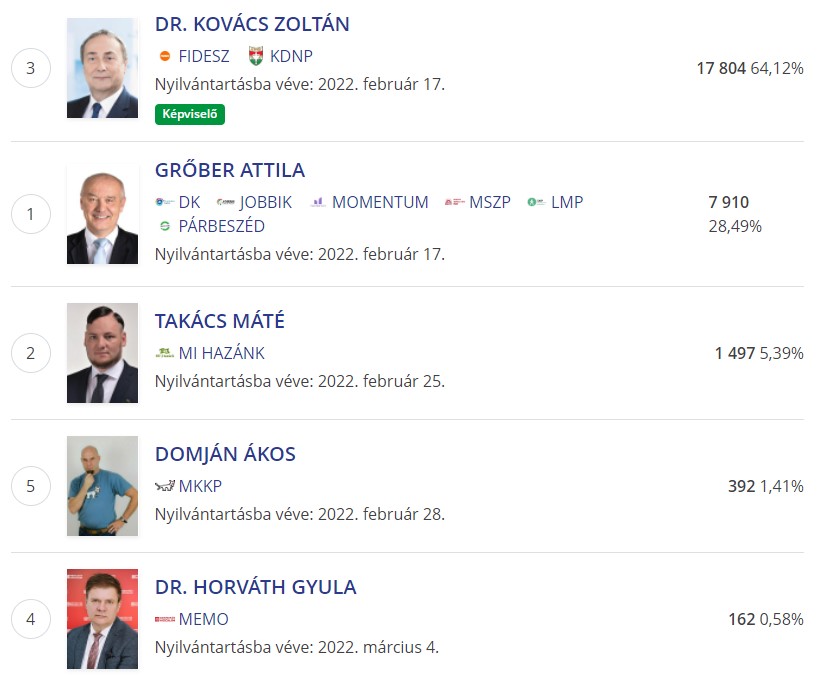 52,34%-os feldolgozottságnál is kitart dr. Kovács Zoltán előnye