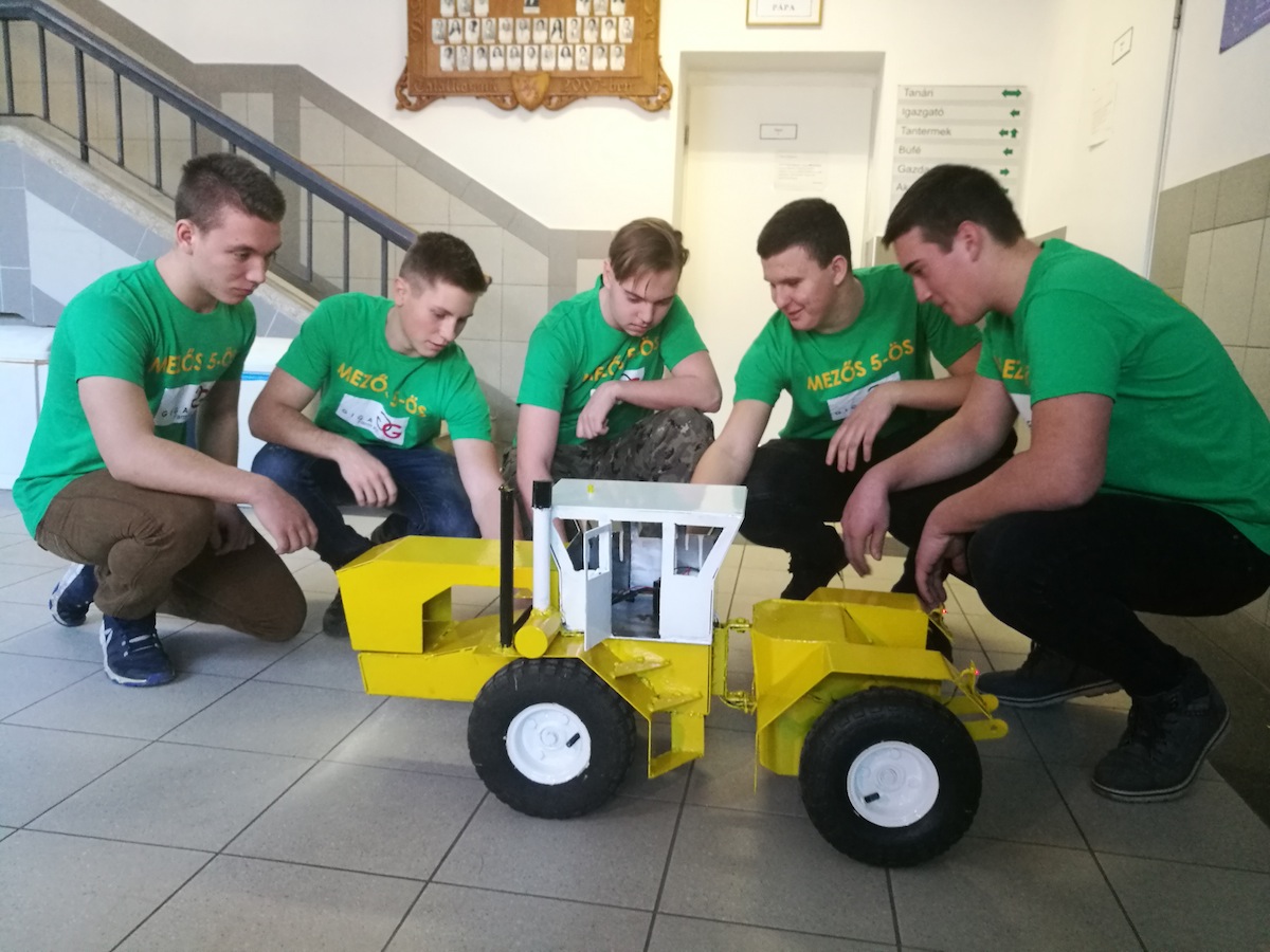 Sági Kristóf, Szücs Dániel, Pócza Attila, Kiss Marcell, Zsebő László összeállítású csapat kapitányától megtudtuk, a szerelési feladatokat sokat gyakorolták, ez volt a csapat erőssége. Nagyon élvezték a makett összeállítását, egy Rába Steiger méretarányos makettjét készítették el a 10. és 11. osztályos tanulók.