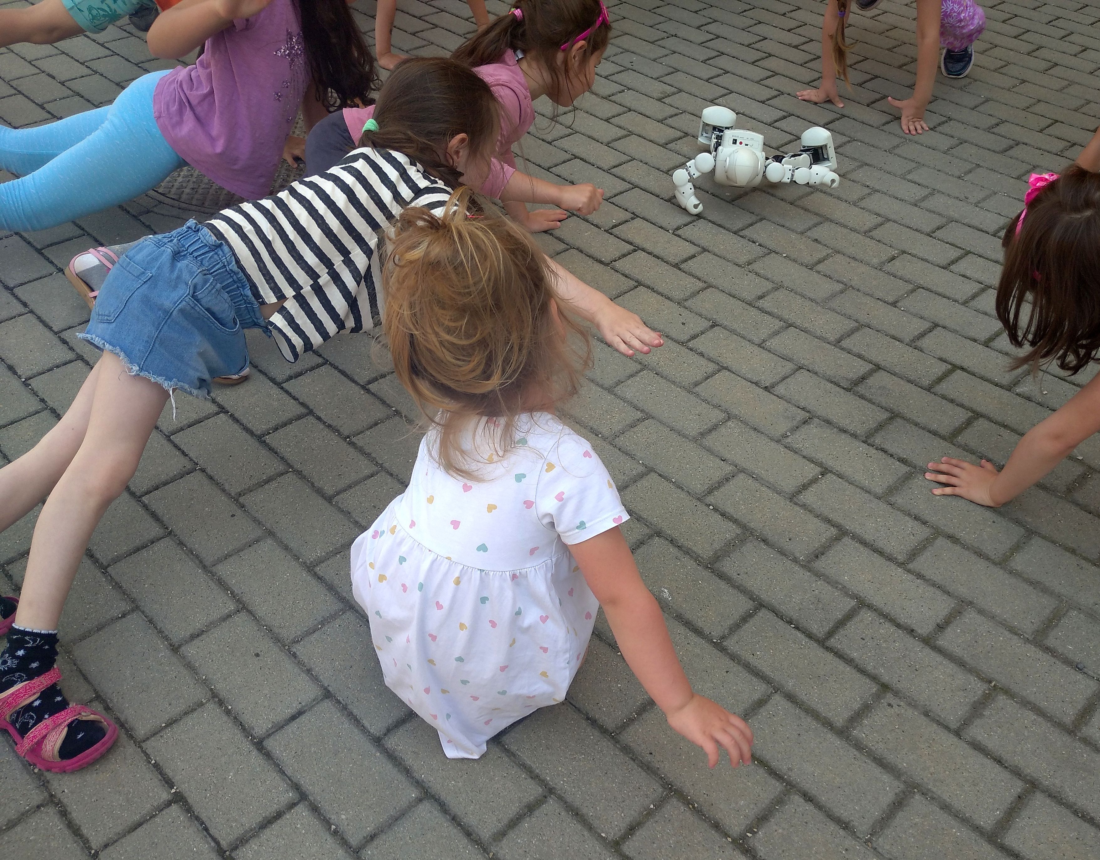 Egy mágneses játék segítségével az is megtudhatták, hogy nem csak gyalogosan, de görkorcsolyával és rollerrel is a járdán kell közlekedni. A legnagyobb sikere a rendőr robotnak volt, akivel együtt tornáztak és táncoltak a picik, majd az udvar térkövén vidám aszfaltrajzokat hagytak hátra.