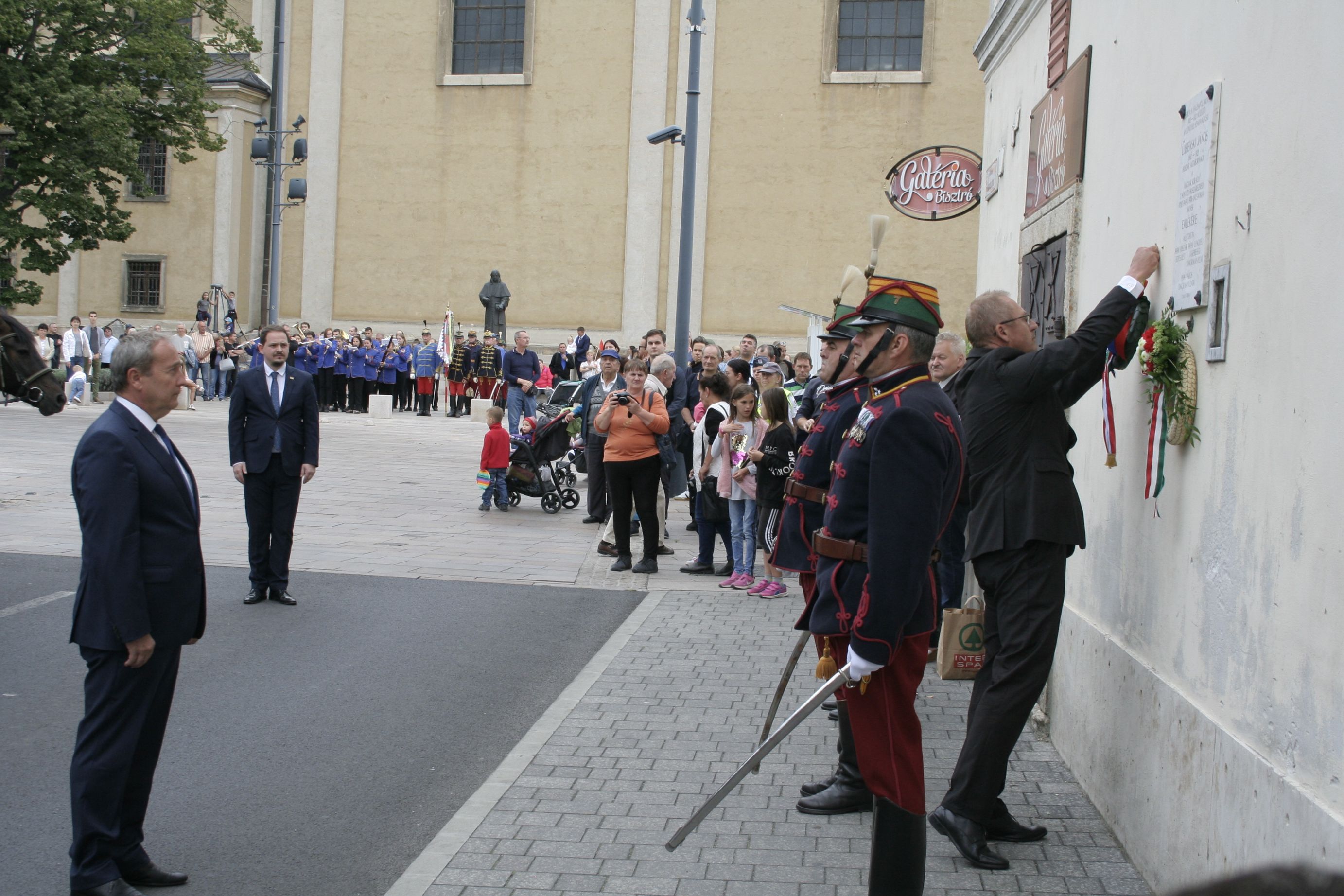 A felvonulást és a Bajvívó téren megtartott gyermekprogramokat követően, Pápa Város Fúvószenekarának vezetésével a huszárok menete átvonult a Korvin utcára. A Lubiensky-emléktáblánál koszorút helyezett el Gerencsér Tibor, pápai származású krakkói főkonzul, dr. Kovács Zoltán országgyűlési képviselő, valamint dr. Áldozó Tamás polgármester. A megemlékezés 16:20 perckor folytatódott a Szent István úton, ahol Győrffy-Villám András hagyományőrző dandártábornok mondott beszédet.