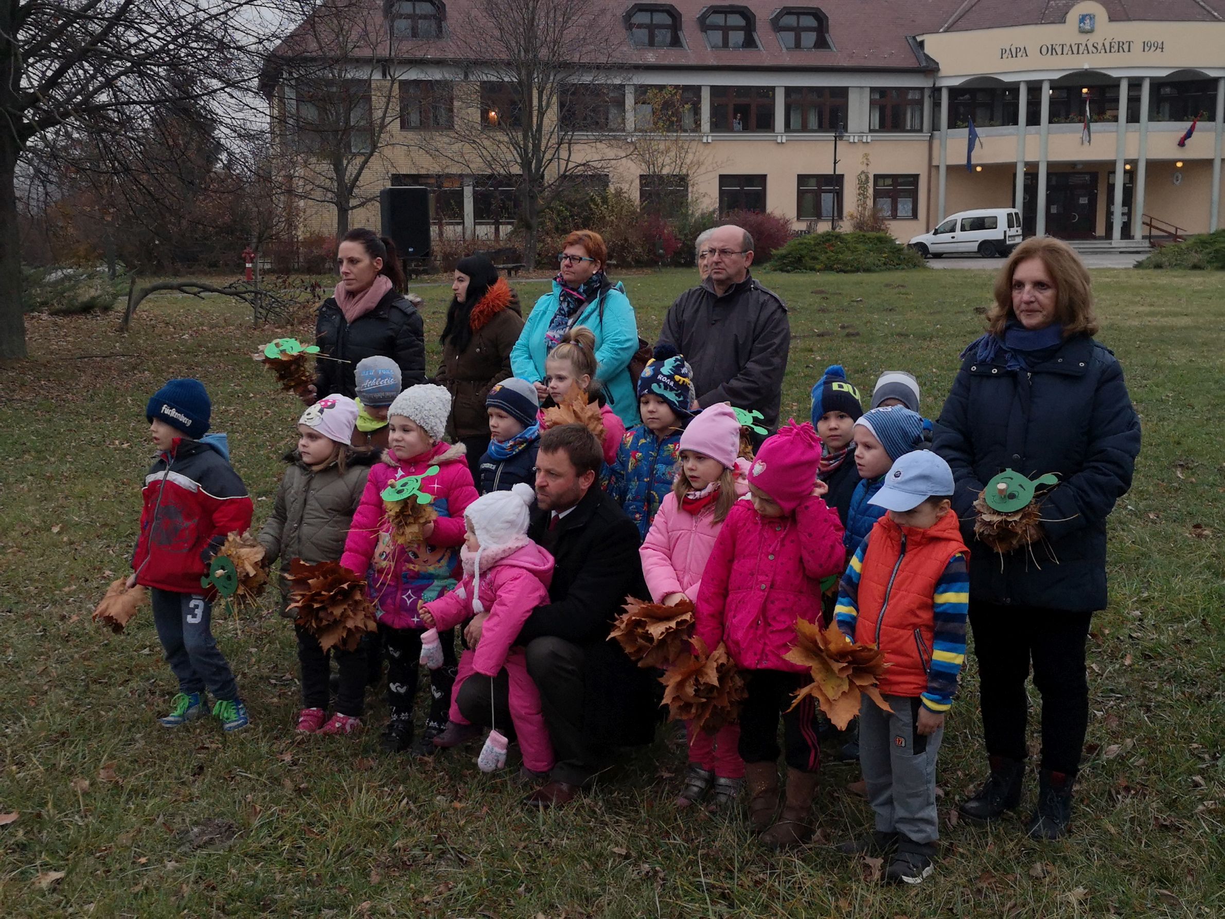 Az ültetést megelőzően a városvezető köszöntőjében azt mondta, Pápa városának különleges felelőssége van a zöld területek megóvásában és bővítésében, hiszen a város területén 54 hektárnyi zöld terület található. – Szeretnénk ennek a területnek jó gazdái lenni, éppen ezért jövőre és az azt követő évben közel 2,5 milliárd forintot fogunk elkölteni a közparkjainkra. De azt is örömmel jelenthetem, hogy az Országfásítási Programhoz is tudunk csatlakozni. Jelenleg zajlik azoknak a területeknek az azonosítása, amelyek a programban szerepelhetnek. Körülbelül 6-8 hektárnyi területről beszélünk, amely a Bakonyerdő Zrt. szakértelmének segítségével reményeink szerint hamarosan fásítható lesz – mondta el a polgármester.