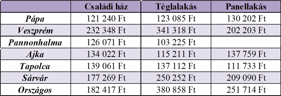 Ingatlanárak Pápán a környező településekkel összehasonlítva és országos viszonylatban (Ft/m2)