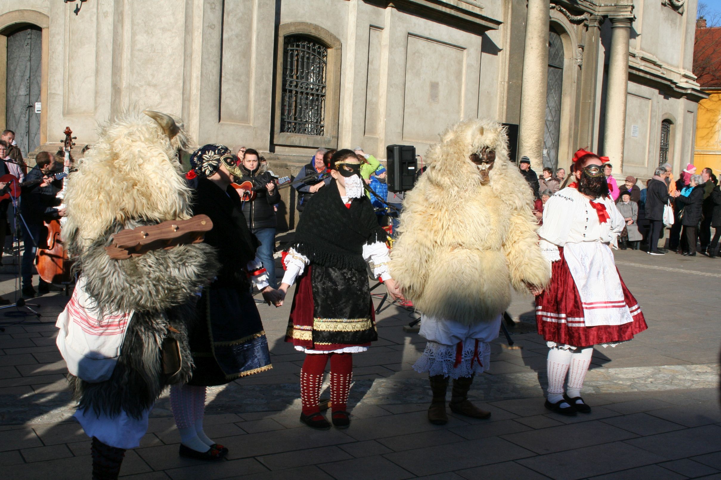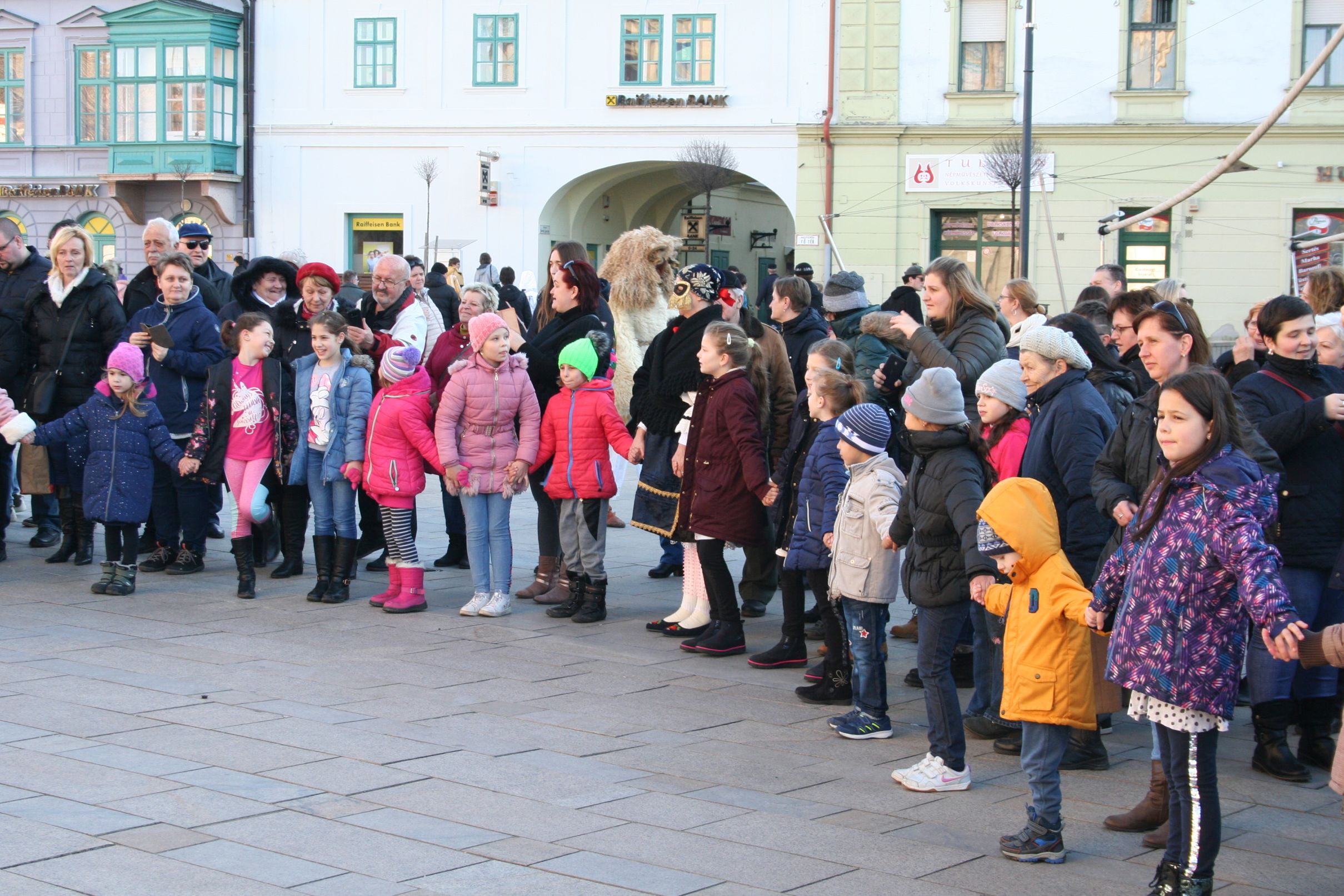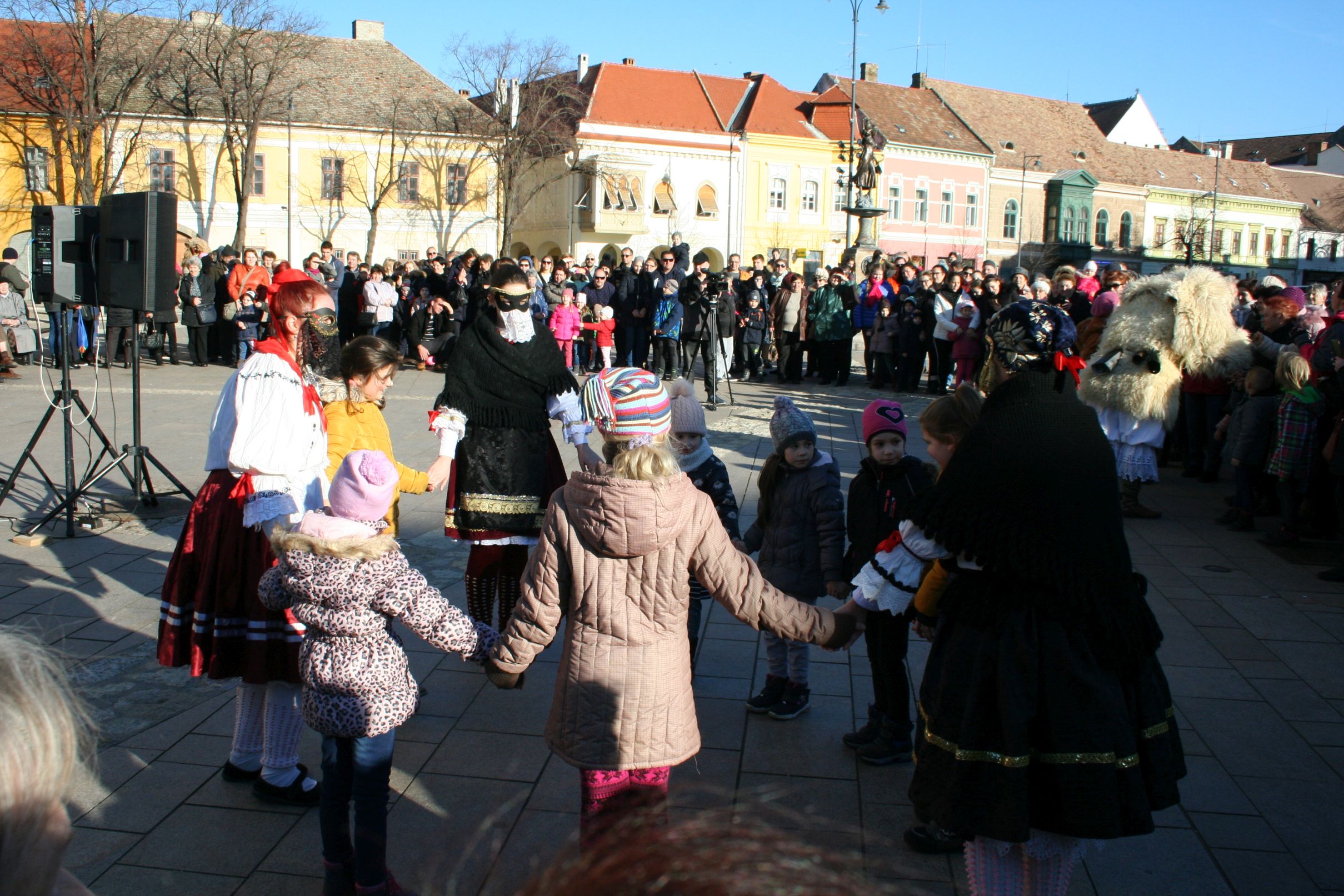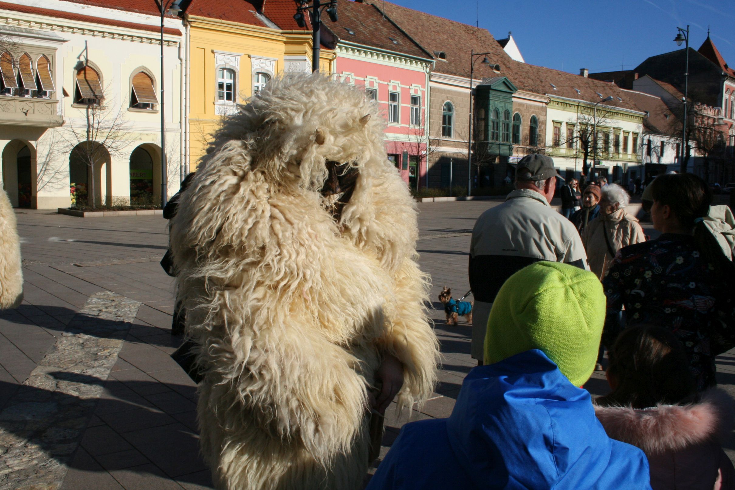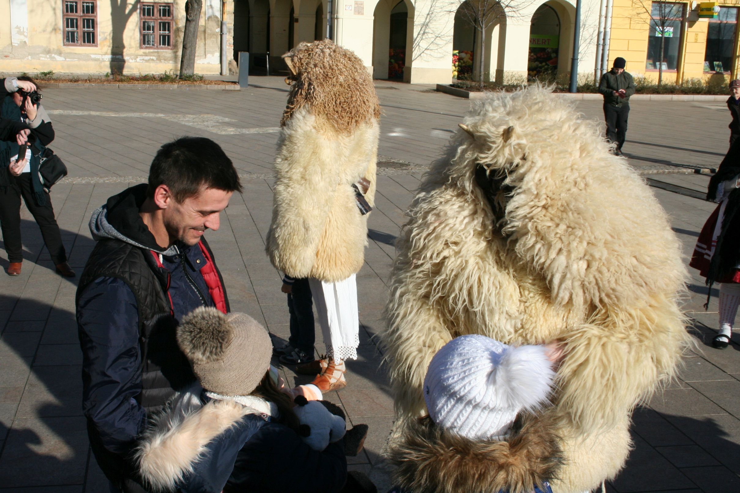 A mohácsi busók néhány képviselője tartott bemutatót és táncházat a pápai Fő téren, a Pegazus Színház farsangi programjainak keretében.
