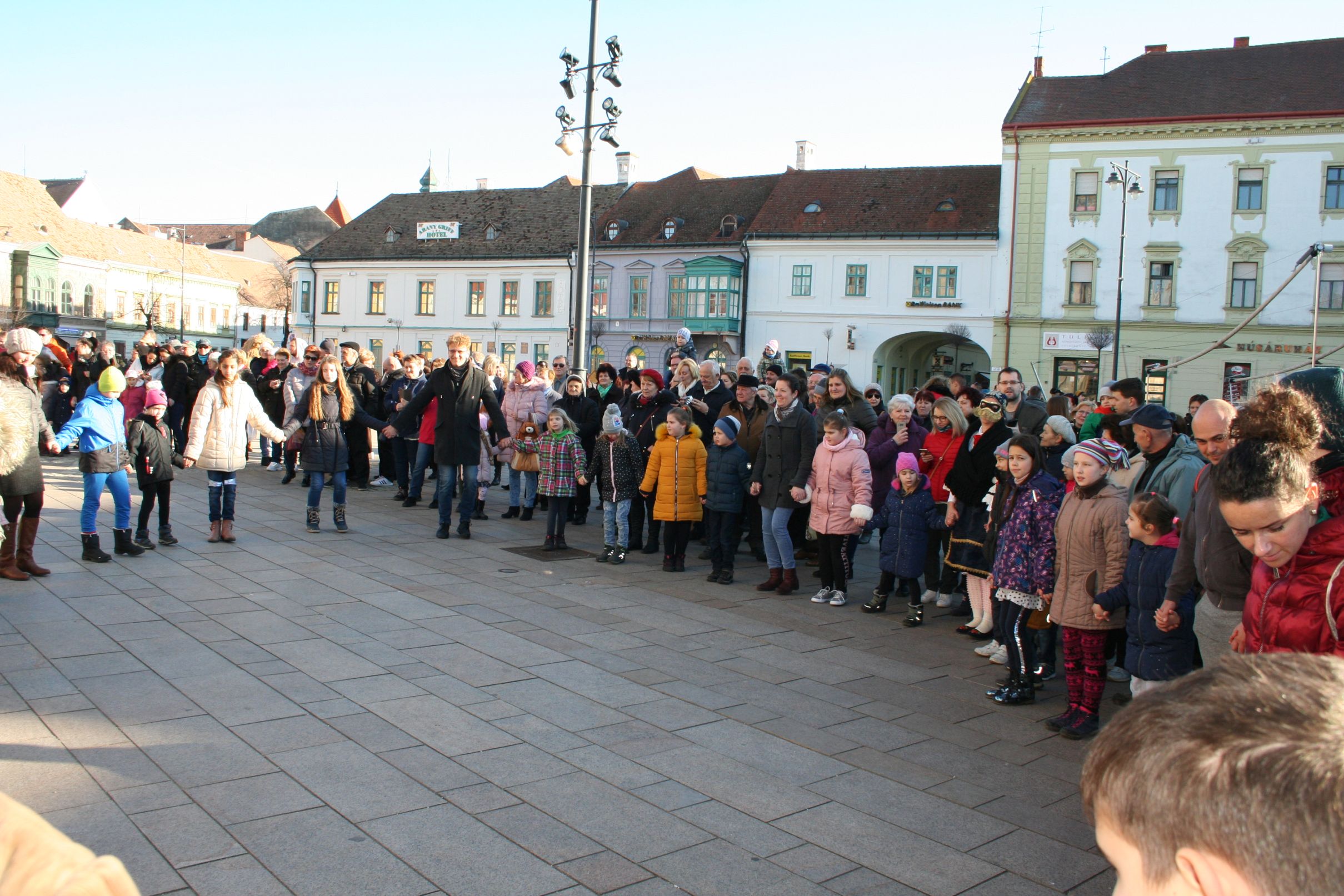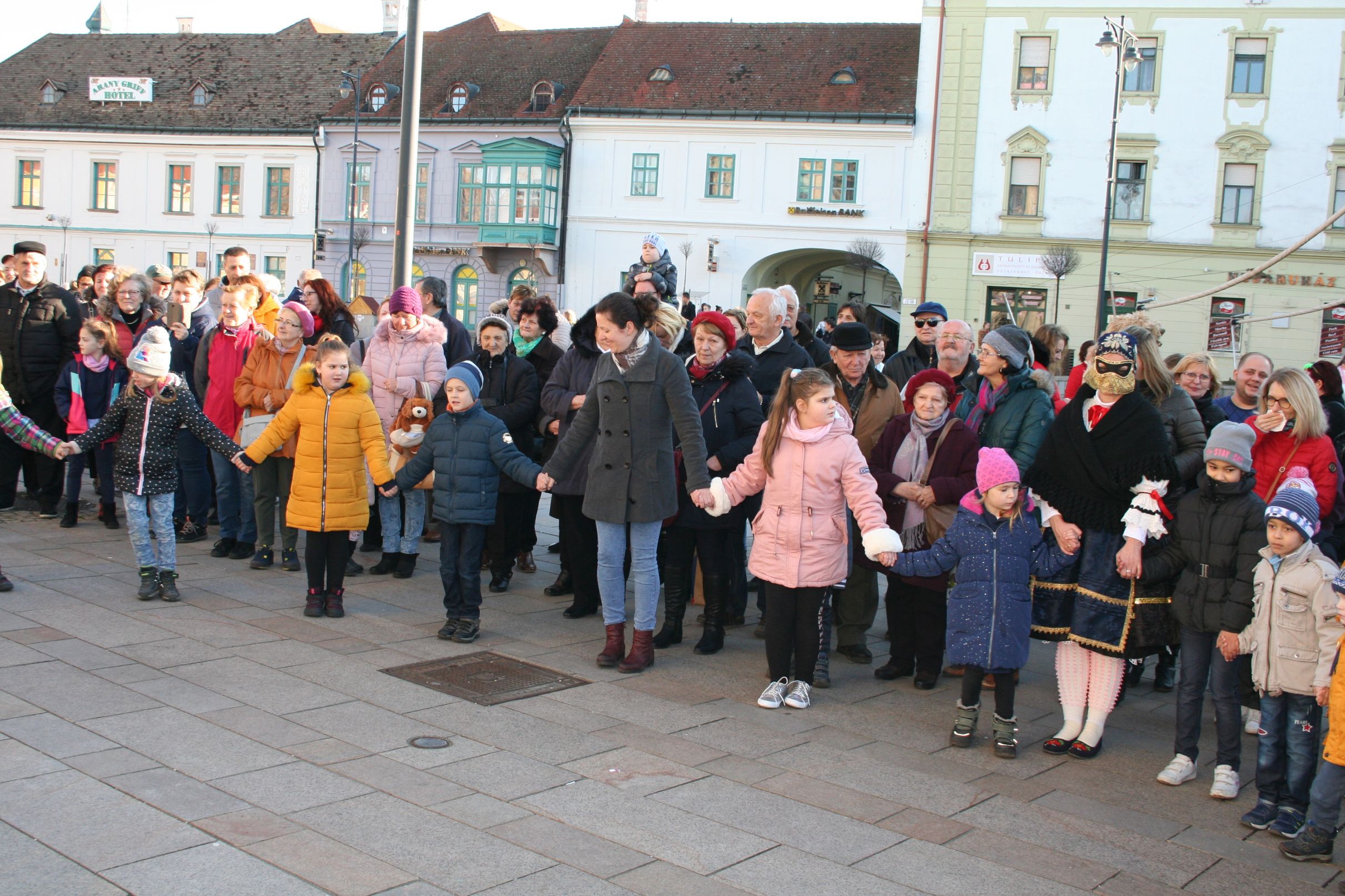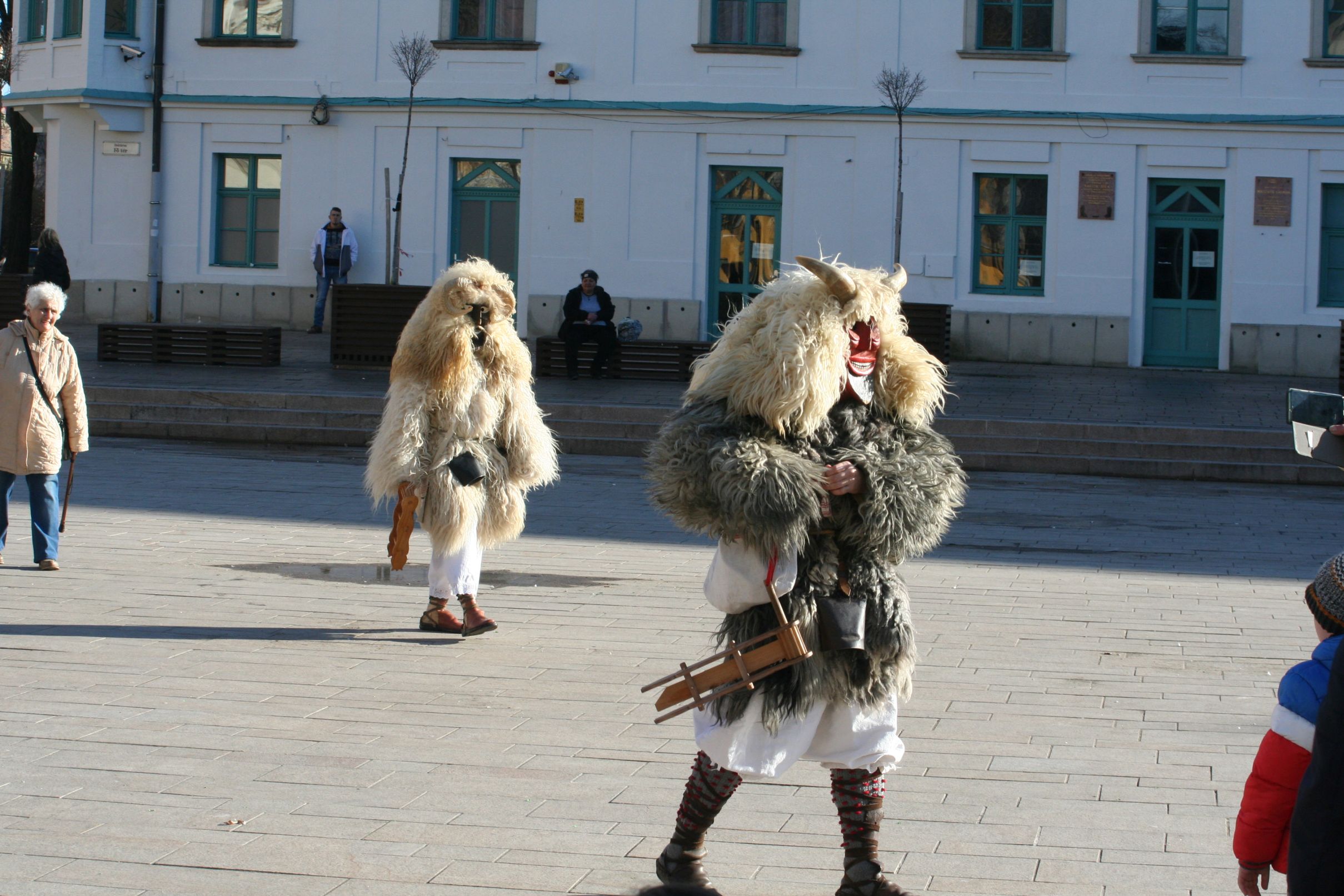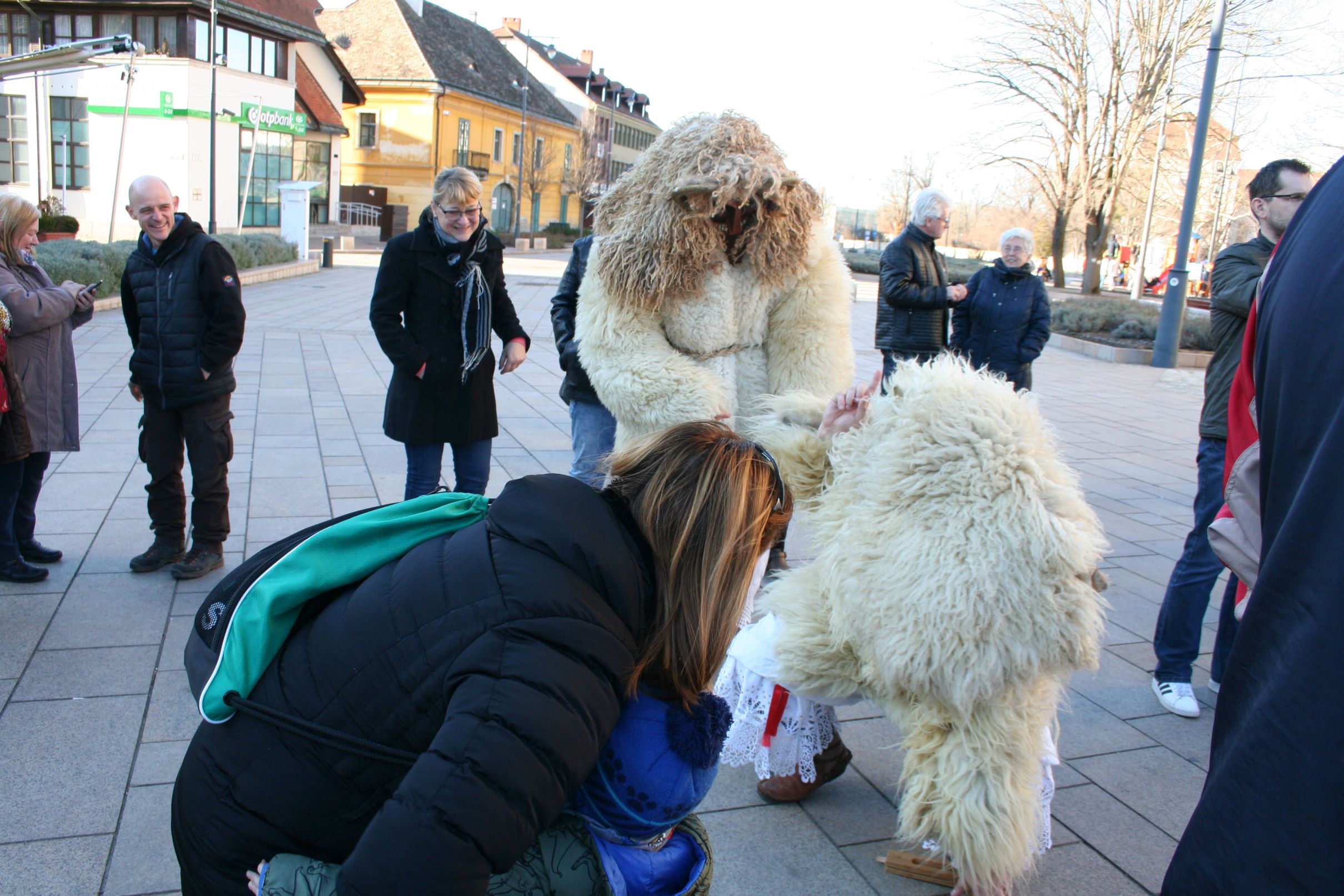 A mohácsi busók néhány képviselője tartott bemutatót és táncházat a pápai Fő téren, a Pegazus Színház farsangi programjainak keretében.