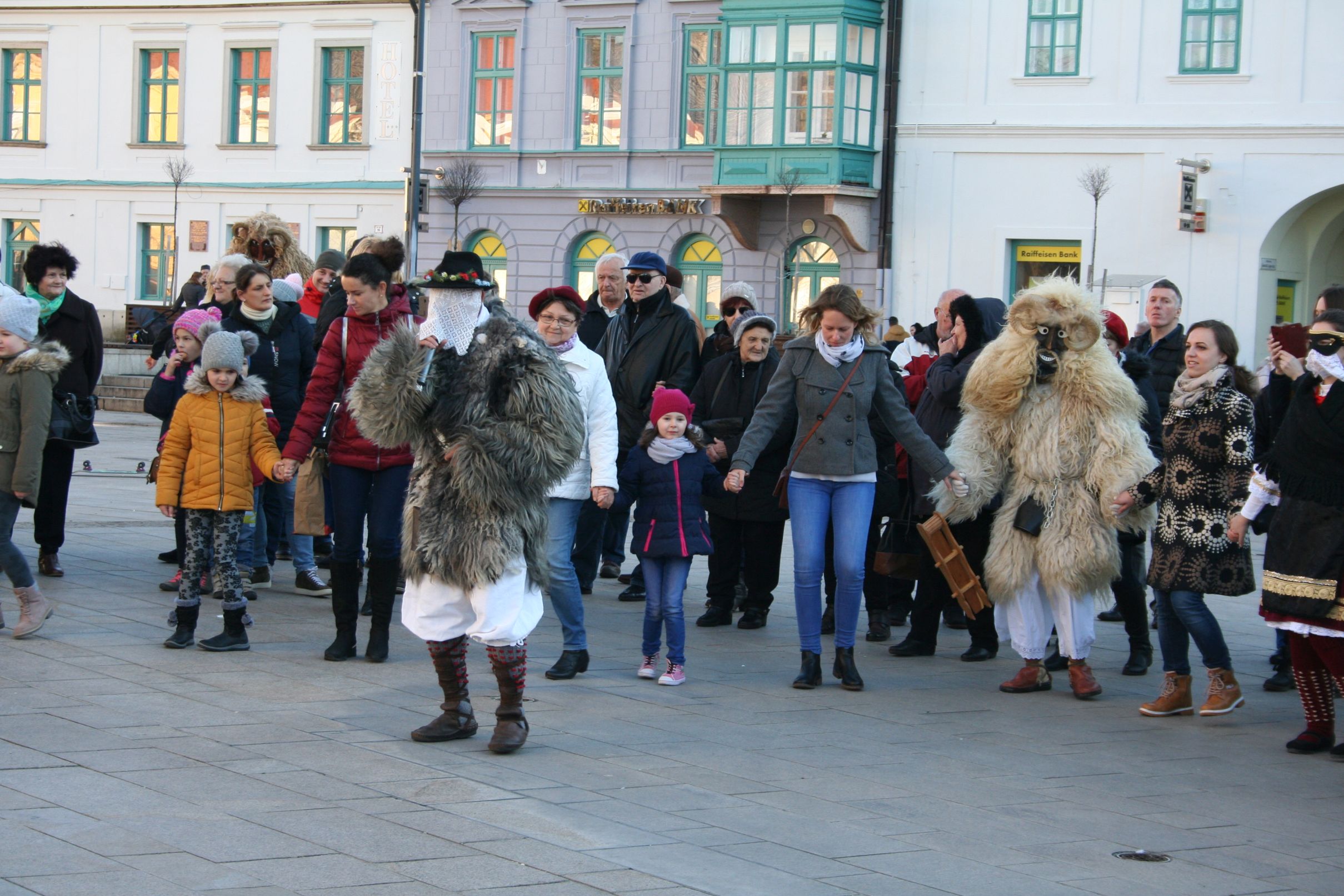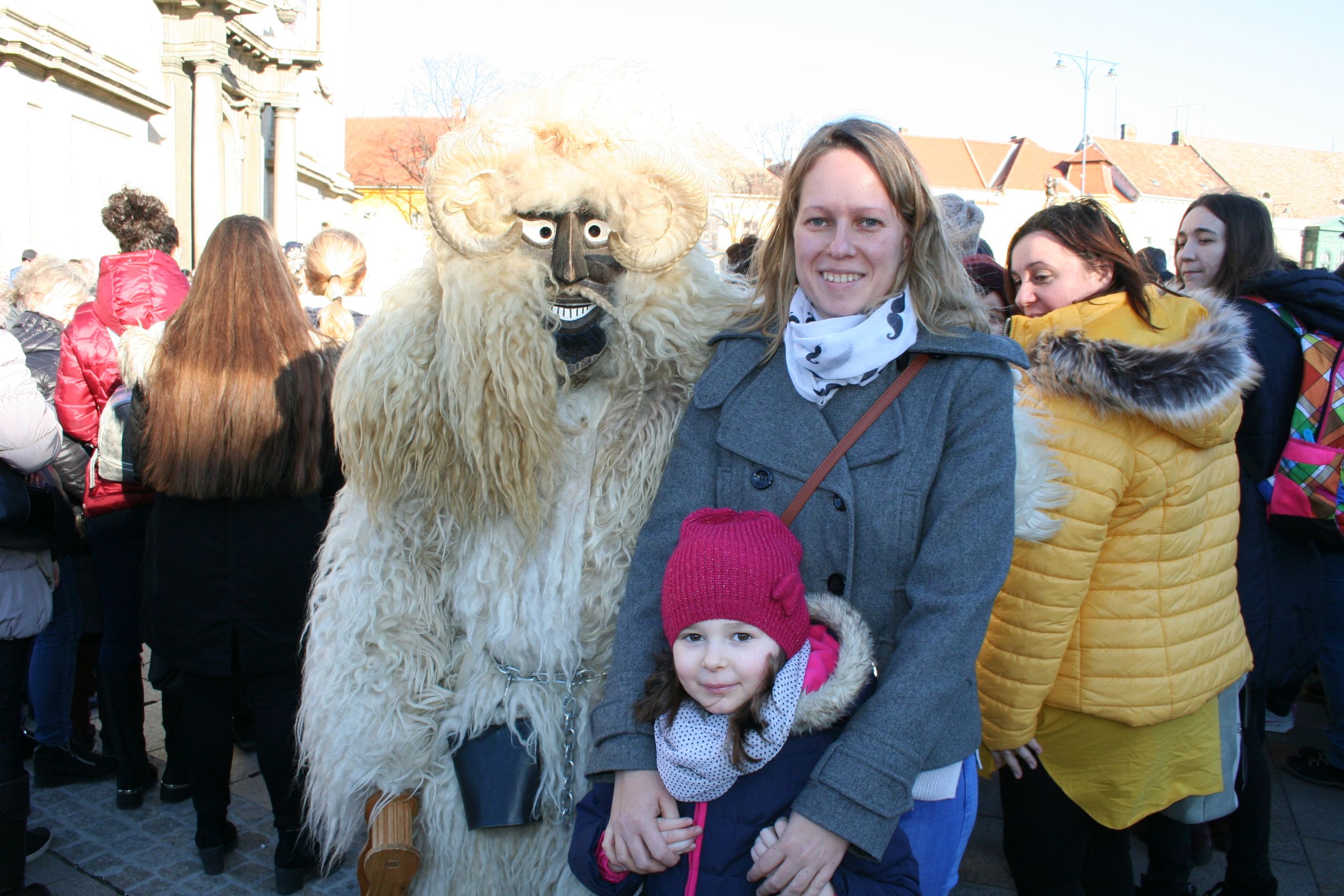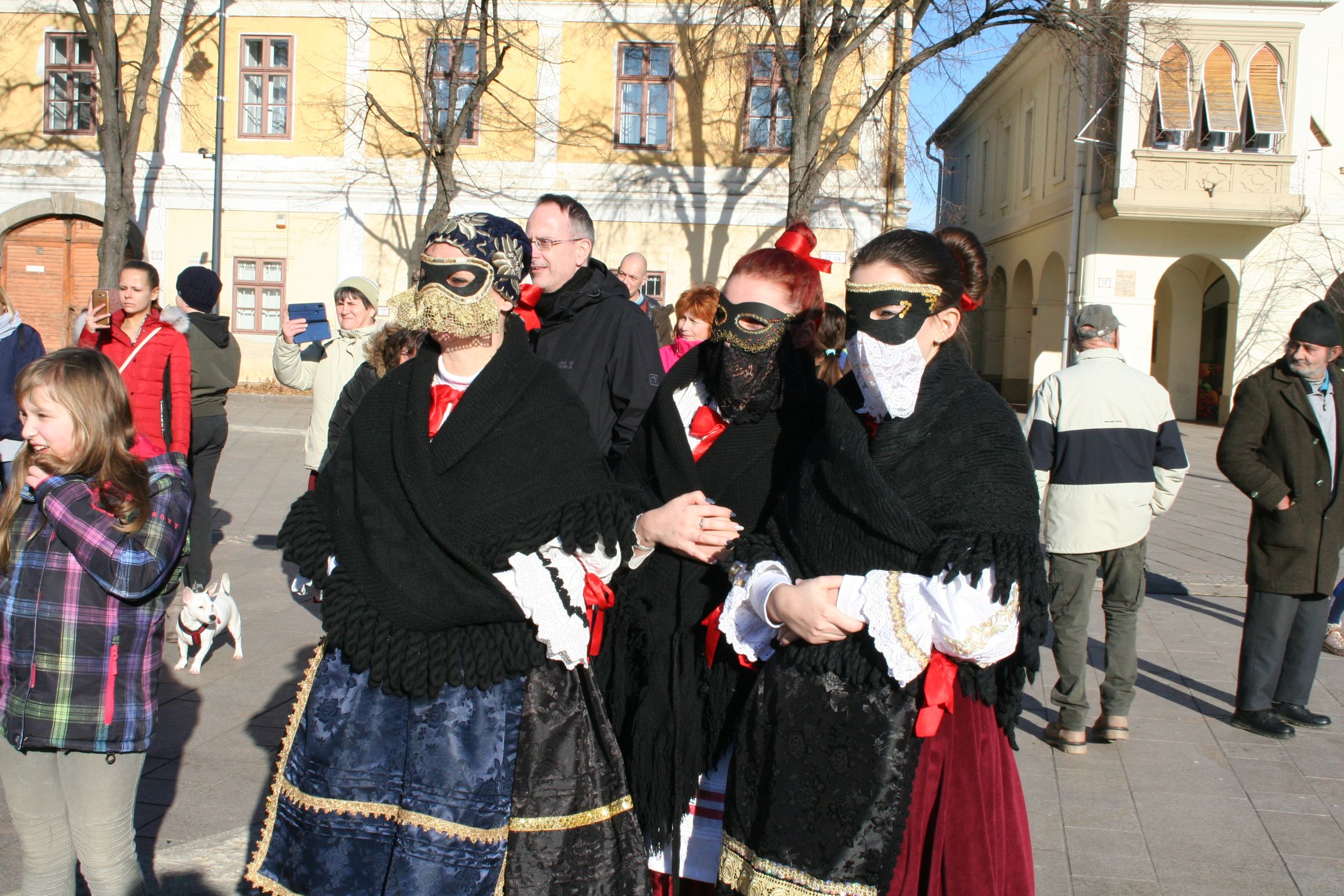 A busók 5 évvel ezelőtt jártak legutóbb Pápán, akkor is szép számban gyűltek össze a pápaiak, hogy találkozhassanak a maszkos alakokkal, akikkel ezúttal is mindenki készíthetett egy-egy közös szelfit. A Tambura zenekar kíséretében bemutatót és táncházat tartottak a busók, amelyhez örömmel csatlakozott a téren összegyűlt sokaság.