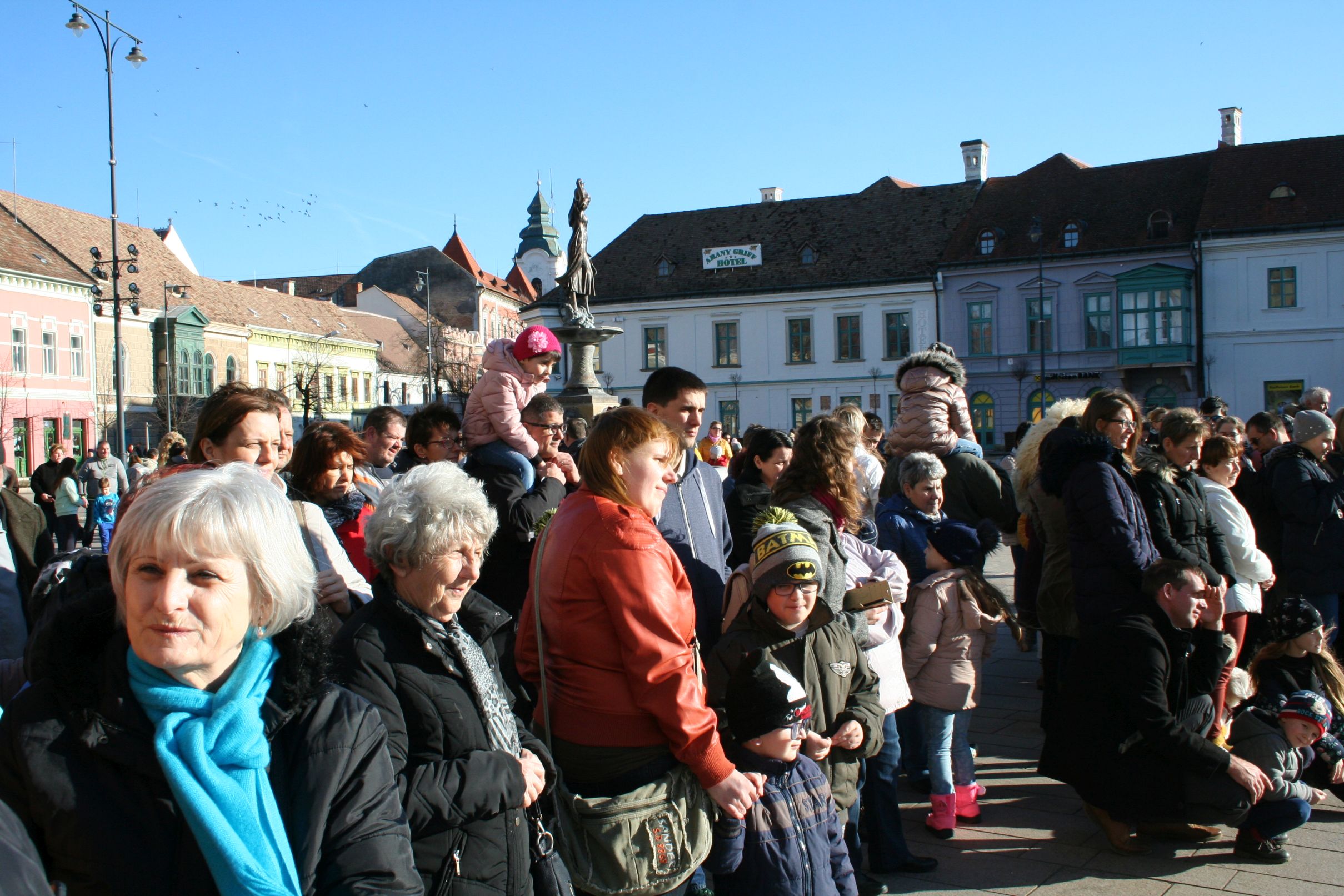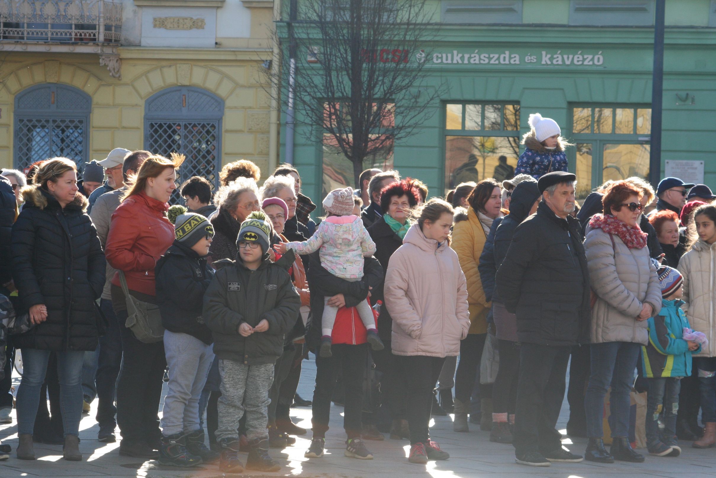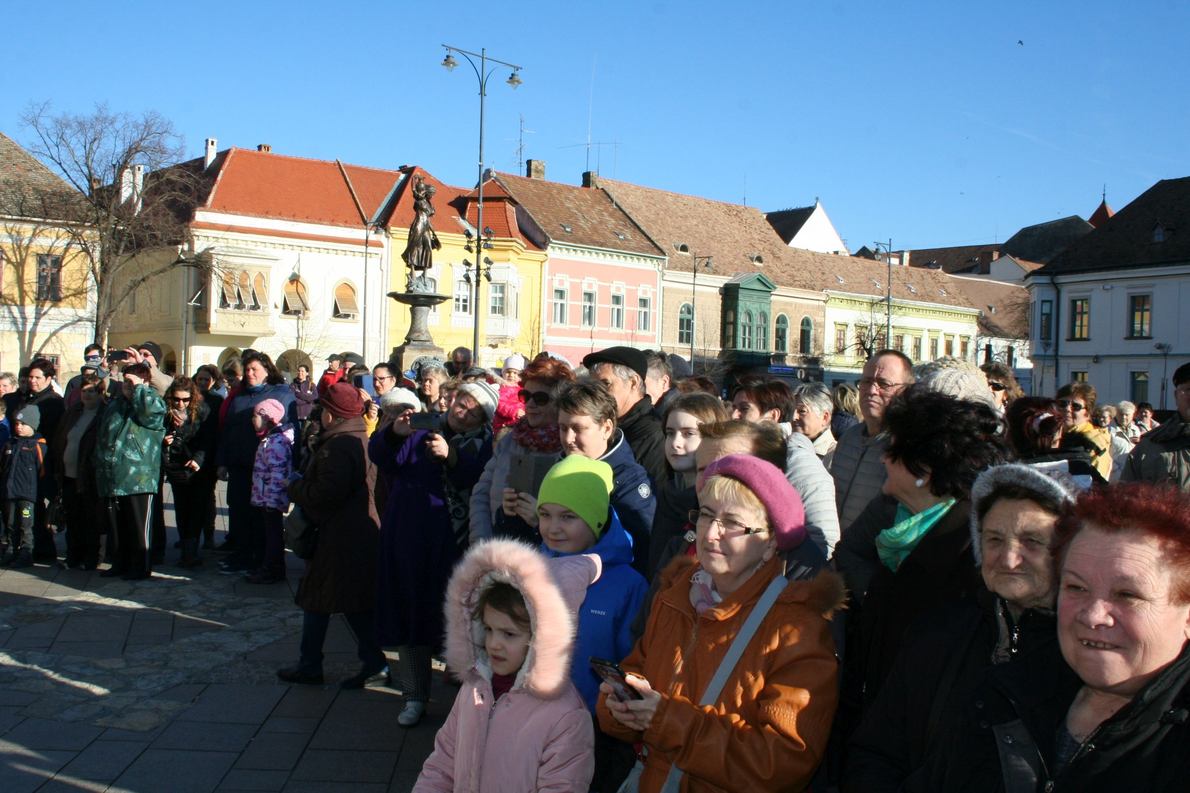 A busók 5 évvel ezelőtt jártak legutóbb Pápán, akkor is szép számban gyűltek össze a pápaiak, hogy találkozhassanak a maszkos alakokkal, akikkel ezúttal is mindenki készíthetett egy-egy közös szelfit. A Tambura zenekar kíséretében bemutatót és táncházat tartottak a busók, amelyhez örömmel csatlakozott a téren összegyűlt sokaság.