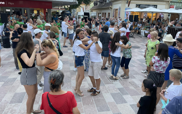 A programok 16 órakor kezdődnek a Fő téren, a májusfát a Szivárvány ovisok fogják kitáncolni. A fellépések sorát a Munkácsy iskolások nyitják meg a Kossuth utcán, őket követik a Tánc-Lánc AMI csoportjai, majd Horváthné Szabó Andrea Tündérkert dalolója szórakoztatja a gyermekeket. 18 órától a Szó és Kép Színpad: A három kívánság című mesejátéka következik, aztán ismét a tánccé lesz a fő szerep. Előbb AForce1 TSE, majd a Zsoodance fiataljai csillogtatják tehetségüket, 19:30-tól pedig a Pápai Cirkuszművészeti Egyesület artistái tartanak bemutatót. 20 órától a szervező Karibi Tánc Egyesület mutatja meg magát, a táncosokhoz bárki csatlakozhat is. A buli egészen éjfélig tart, Dj Paár Vilmos Cuban Vibes közreműködésével.