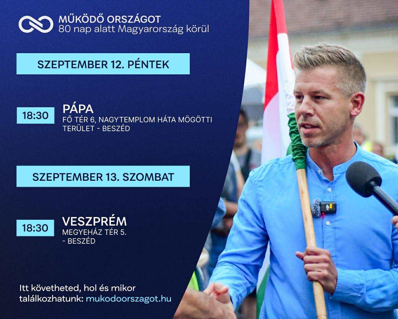 Magyar Péter 80 nap alatt Magyarország körül elnevezésű országjáró körútjának részeként érkezik Pápára, pénteken 18:30-kor tart lakossági fórumot. A nagygyűlés helyszíne még nem ismert, de annyit megtudtunk, hogy a belváros valamely közterületén találkozik a választókkal a párt elnöke.