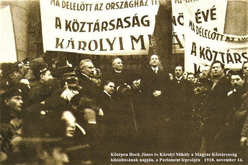 Tehát négyszáz esztendő után Magyarország újra szuverén állammá válik. 1919 januárjában a miniszterelnököt, Károlyi Mihályt köztársasági elnökké választják, a kormány cselekvésre szánja el magát: földet osztanak, hadsereget szerveznek. Mindeközben Magyarország megkapja az ún. Vix-jegyzéket, az első világháborúban győztes Antant-hatalmak által a Párizs környéki békeszerződések alkalmával, 1919. február 26-án hozott határozatát és annak végrehajtási előírásait tartalmazó levelet a Belgrádban székelő francia magyarországi hadsereg ideiglenes parancsnokától. A kormány ezt elutasítja. És ez alatt a hátterekben, belülről is folyik az intrika; a szociáldemokraták Károlyit elárulják, az Oroszországi Kommunista Párt magyar csoportjának Magyarországra irányított tagjaival szövetkeznek.