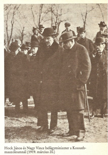 „…ő (Hock János) és még néhányan – a református Juhász Nagy Sándor, Jánosi Zoltán, Nagy Vince stb. – kitartottak Károlyi mellett a régi hívek közül, de inkább csak becsületből. Érezniük kellett, hogy egyre inkább mellékszereplővé válnak egy olyan darabban, amely elveszítve eredeti szerzőjét már önmagát írja tovább. Hock János nem volt átlagos pap, de Károlyi oldalán valósággal a próféta szerepét töltötte be: megjövendölte a jó időket még októberben, s előre jelezte a bukást is, amikor a szocialisták Károlyi fejére nőttek.”
