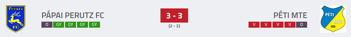 A jó formában lévő pápaiak bizakodva várhatták a találkozót, a tabella középső harmadában helyet foglaló pétiek ellen, hiszen a Perutz aktuális ellenfele az elmúlt öt mérkőzéséből négyet elveszített. A várakozásoknak megfelelően is indult a meccs, a Pápa már az első percben vezetést szerzett, Varga révén. Nagy Richárd a 12. percben egalizálta az eredményt, aztán a 27. minutumban ismét a hazaiak vezettek, Benecz találatával. A félidő végéig nem sikerült megőrizni az előnyt, Horváth talált be, 2:2-vel fordultak a csapatok.
