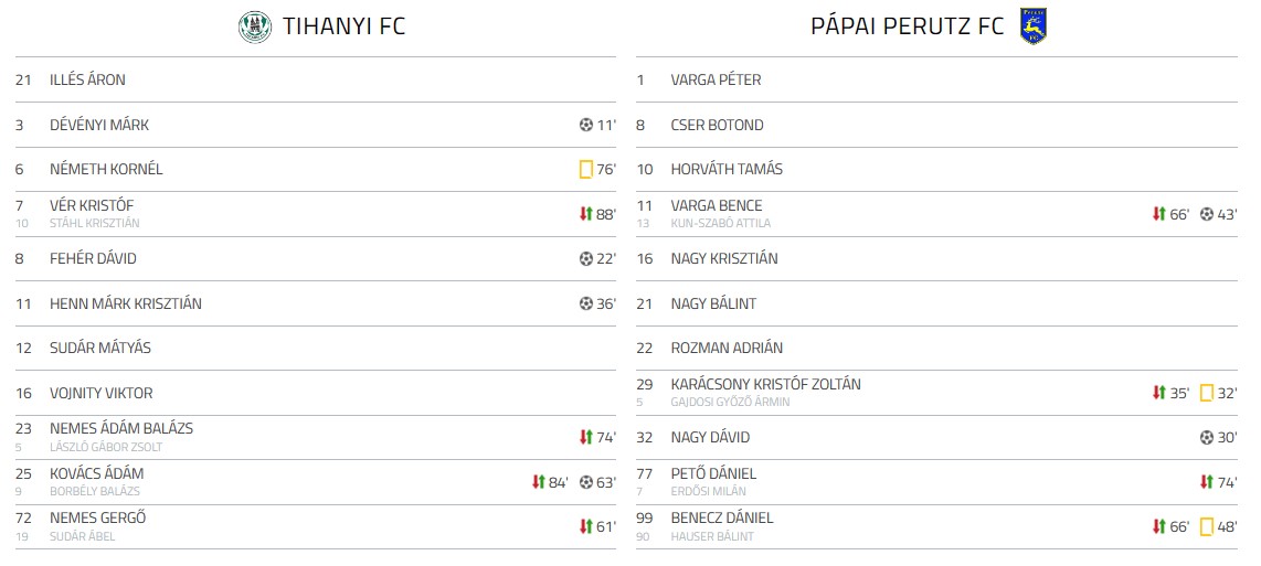 Minden bizonnyal izgalmas mérkőzést láthatott a tihanyi publikum, hat gól is született a találkozón, sajnos a pápaiak csak kétszer találtak be a hazaiak kapujába.