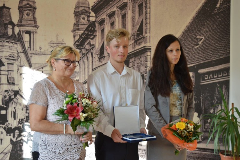 A fiatalember kiváló szereplését a nemzetközi megmérettetésen a városvezető Pro Publico kitüntetéssel ismerte el és köszöntötte felkészítő pedagógusait is: Szabó Ildikót, aki földrajzból segítette a Türr István Gimnázium diákját és dr. Kozma Zoltánnét, aki angolból készítette fel a versenyre.