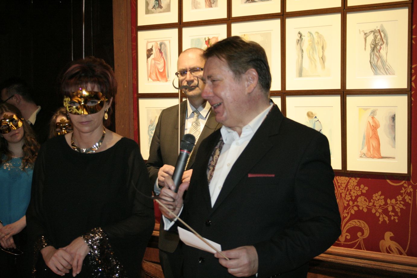 - Szívből gratulálok Önöknek, hiszen az Esterházy-kastélyból Salvador Dalí kastélyt csináltak - mondta köszöntőjében Thomas Emmerling műgyűjtő. -Kimondhatjuk, Salvador Dalí őrült volt, de mindenképpen megelőzte korát. Excentrikus, kicsapongó életmód, feltűnési vágy és egy olyan élet, ami mögött ennél sokkal több van. Az impresszionizmus, kubizmus művei tárgyakat próbáltak megjeleníteni, míg Dalí érzelmeket, gondolatokat próbált lefesteni. S mindeközben egy gondolat foglalkoztatta: mi tartja össze az életet, mi van az élet mögött. Ez nagyon filozofikus gondolat. A választ erre a kérdésre a világirodalomban próbálta megtalálni, s ezek a válaszok jelennek meg grafikáiban is - magyarázta Salvador Dalí művészetét a gyűjtő, majd azzal a gondolattal nyitotta meg a kiállítást, hogy mindenkinek azt kívánja, fedezze fel a saját, személyes Salvador Dalíját.