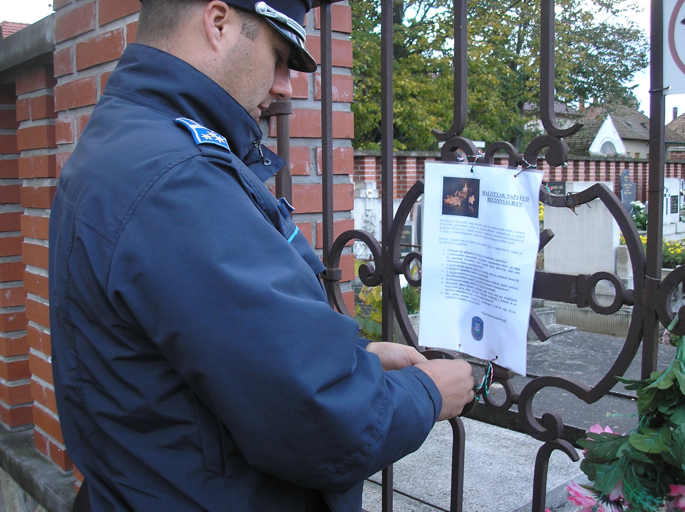 A temetőben szolgálatot teljesítő Németh Zoltán rendőr főtörzsőrmester és Németh Péter rendőr főtörzsőrmester körzeti megbízottak folyamatos járőrözéssel biztosították a sírkert biztonságát, valamint a temető több bejáratánál vagyonvédelmi tanácsokat tartalmazó plakátot is elhelyeztek.