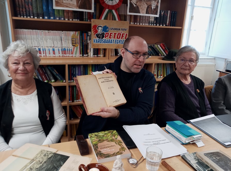 A PVE ügyvivője, Kerecsényi Zoltán a neves szépíró-irodalomtörténész, dr. Milbacher Róbert nemrégiben megjelent Legendahántás című kötetét ismertette a helyet foglalóknak, abból is a Petőfire vonatkozó passzusokat; például egy érdekes helyi vonatkozást, mely Petőfi Dózsa-kultuszához fűződött.