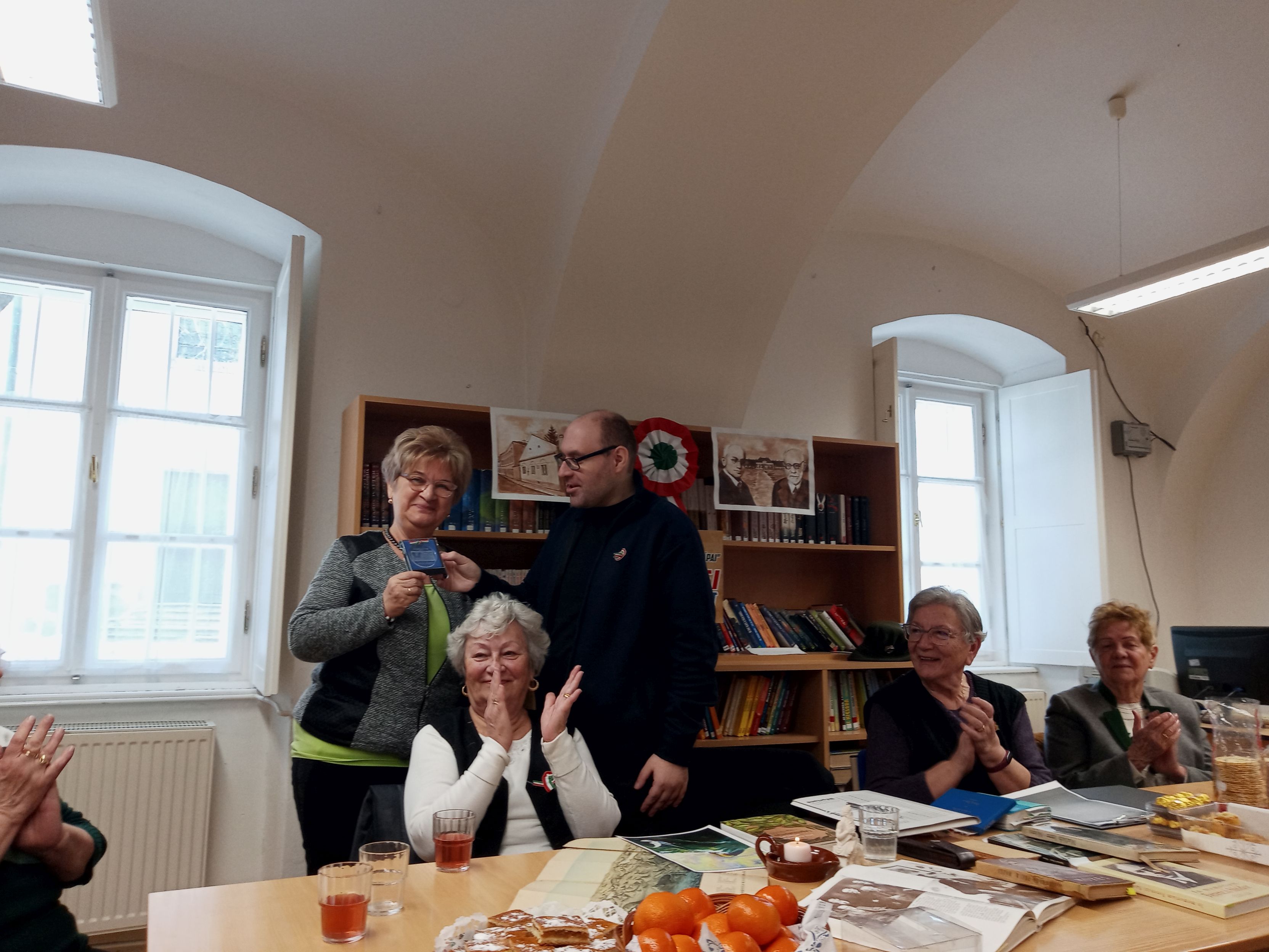 A jelenlévők a PVE Petőfi-bicentenáriumi plakettjével mondtak köszönetet Margl Józsefnének, huzamos idejű, önkéntes, segítő tevékenységéért.