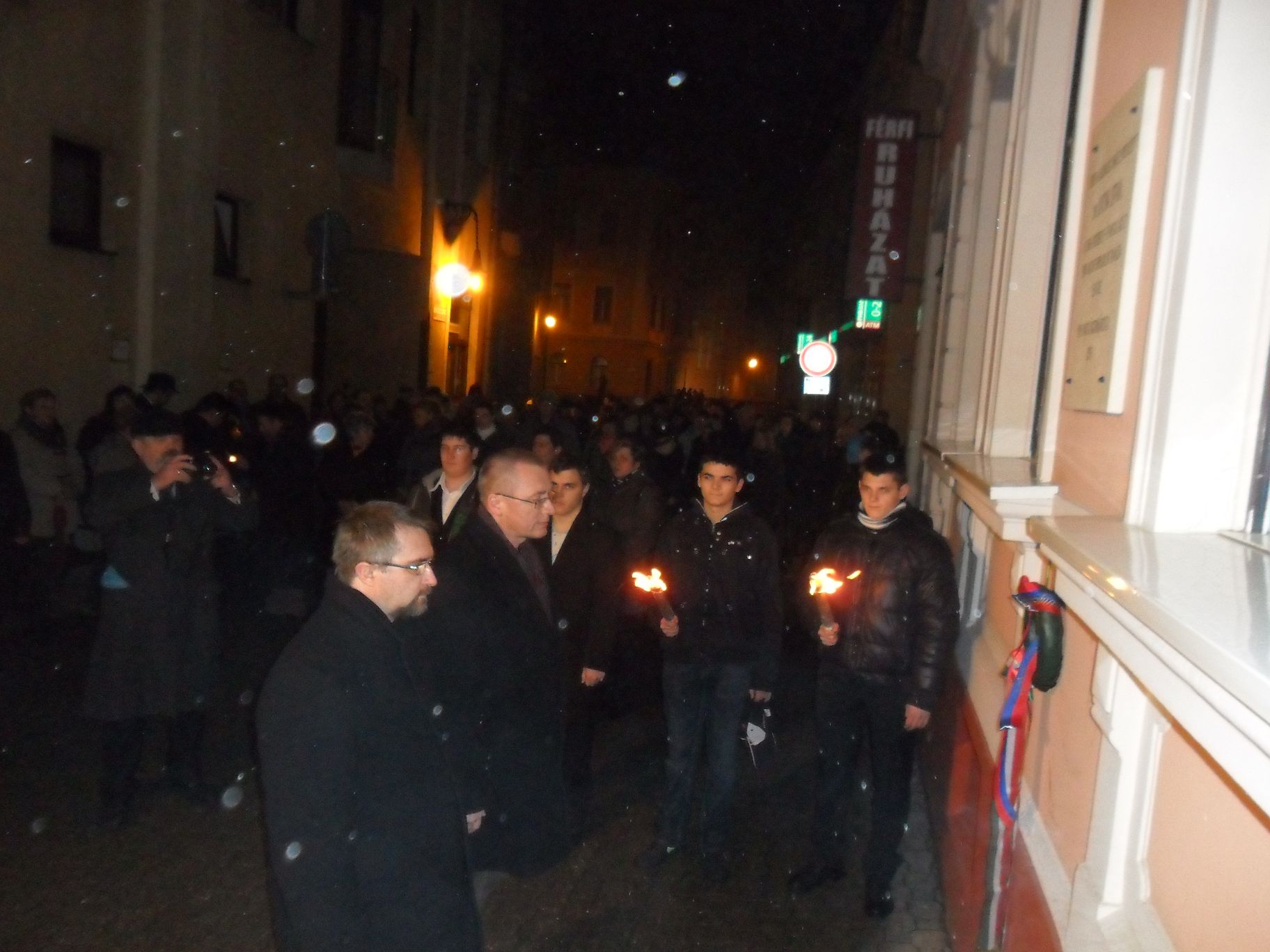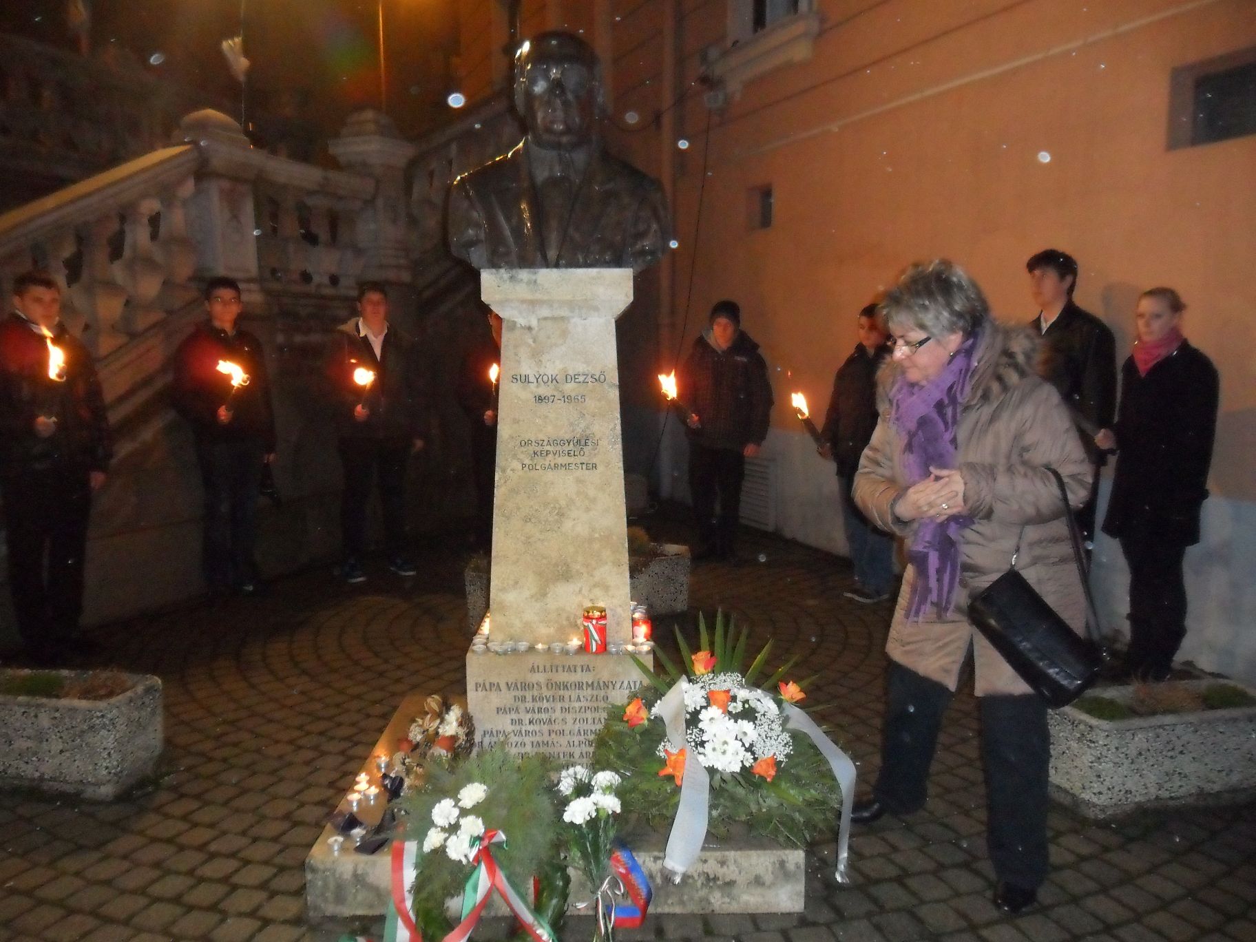 Az emlékezők ezt követően helyezhették el koszorúikat, virágaikat és mécseseiket Sulyok Dezső szobránál, majd közösen vonultak át aKatona István emléktáblához.
