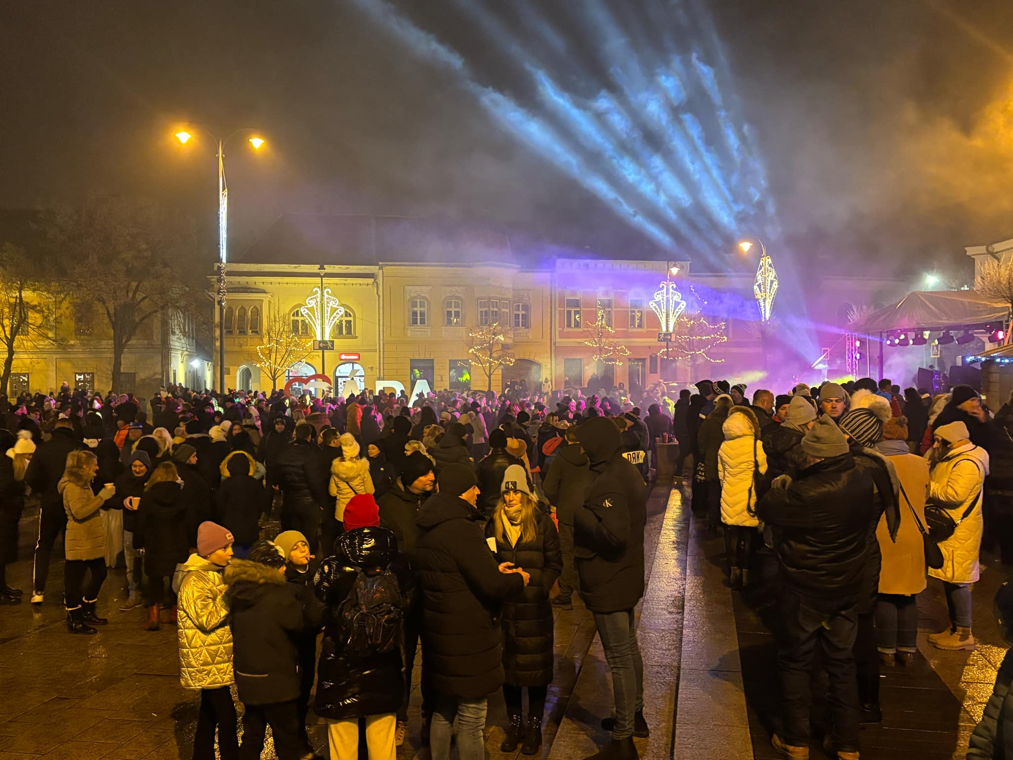 A tavalyi Kossuth utcai közös szilveszteri buli után ezúttal visszaköltözött a Fő térre a rendezvény. A 21 órától megtartott buliban DJ. Béci retro slágereket kevert, DJ. Gregori pedig mai nótákat forgatott. A hangulat éjfélre hágott a tetőfokára, a közös visszaszámlálást követően felcsendult a Himnusz. Bár a köd miatt a városi tűzijáték elmaradt, de a bulizók gondoskodtak azért látványosságról, így annak sem lehetett hiányérzete, aki emaitt érkezett a térre. Sokan vittek magukkat csillagszórót is, hogy éjfél után meggyújtsák és fényével köszöntsék az új évet.