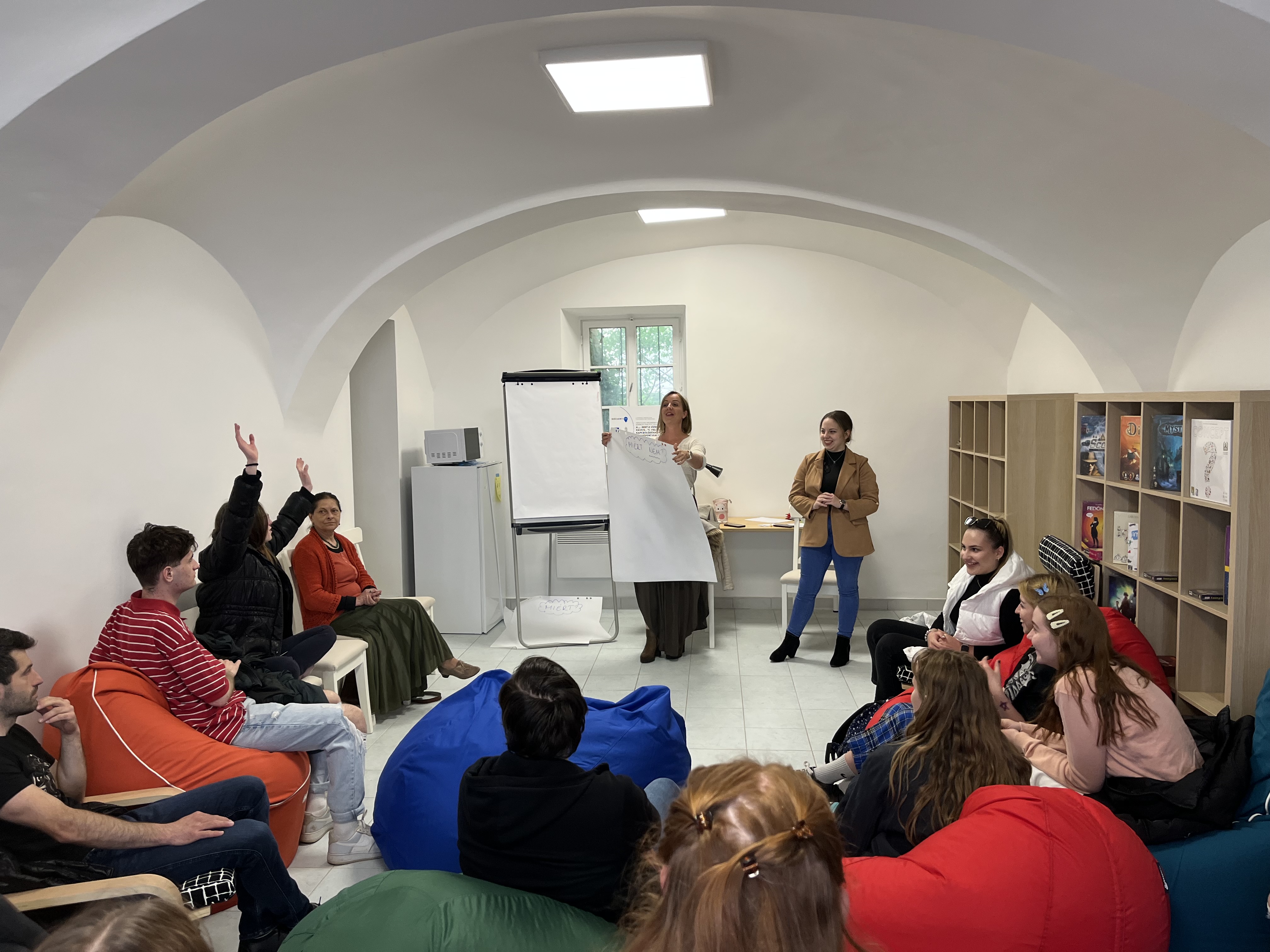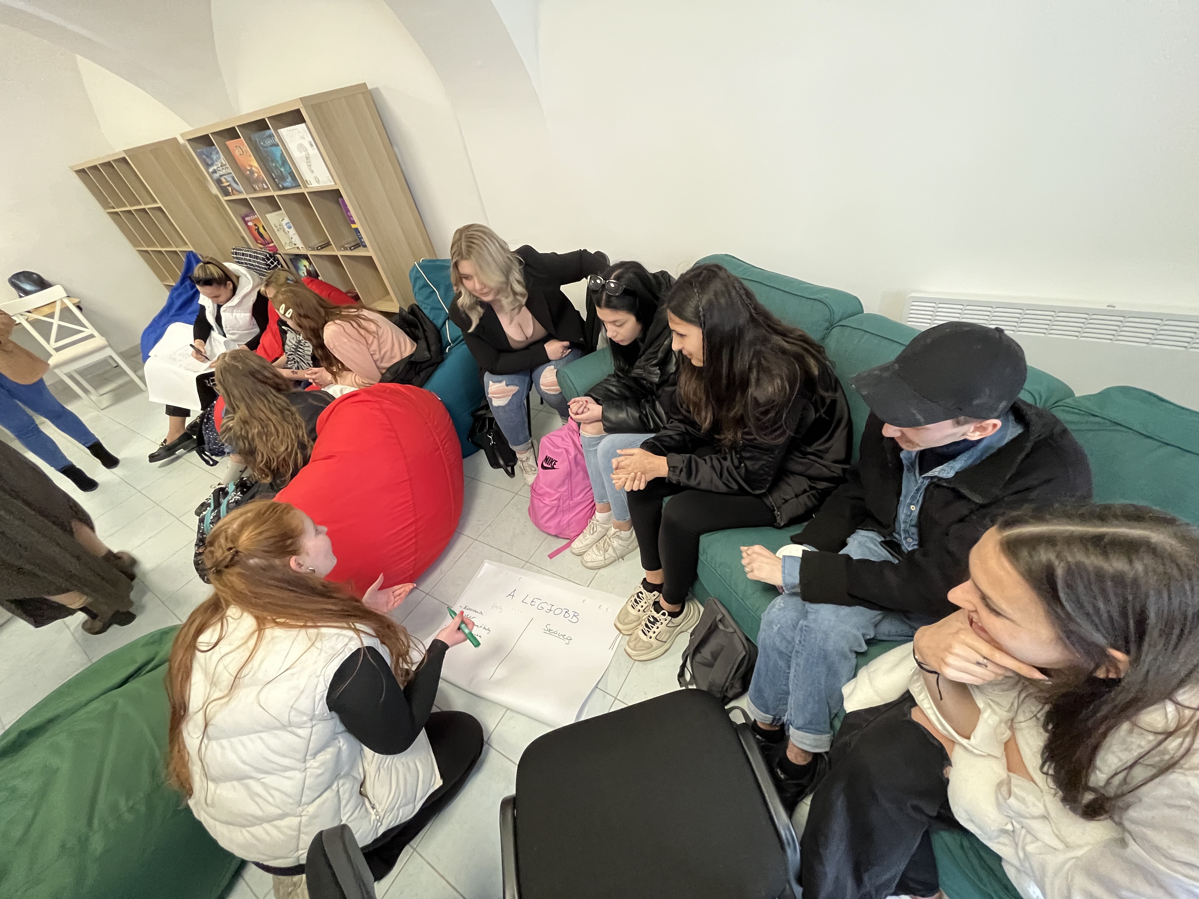 A chat-románcoktól az offline kapcsolatokig címmel meghirdetett, Csikós Borbála coach, tanár és Mágocsi Barbara végzős diák által vezetett programon az ismerkedés témakörét járták körbe a résztvevők, interaktív és nem kevésbé szókimondó, provokatív módon. Csapatfeladatokkal és szituációs játékokkal vonták be a diákokat a beszélgetésbe, de néhány perc után a hely hangulata és a közösség azonnal oldotta a gátlásokat, a fiatalok bátran kifejezték véleményüket, gondolataikat, tapasztalataikat a témával kapcsolatban.