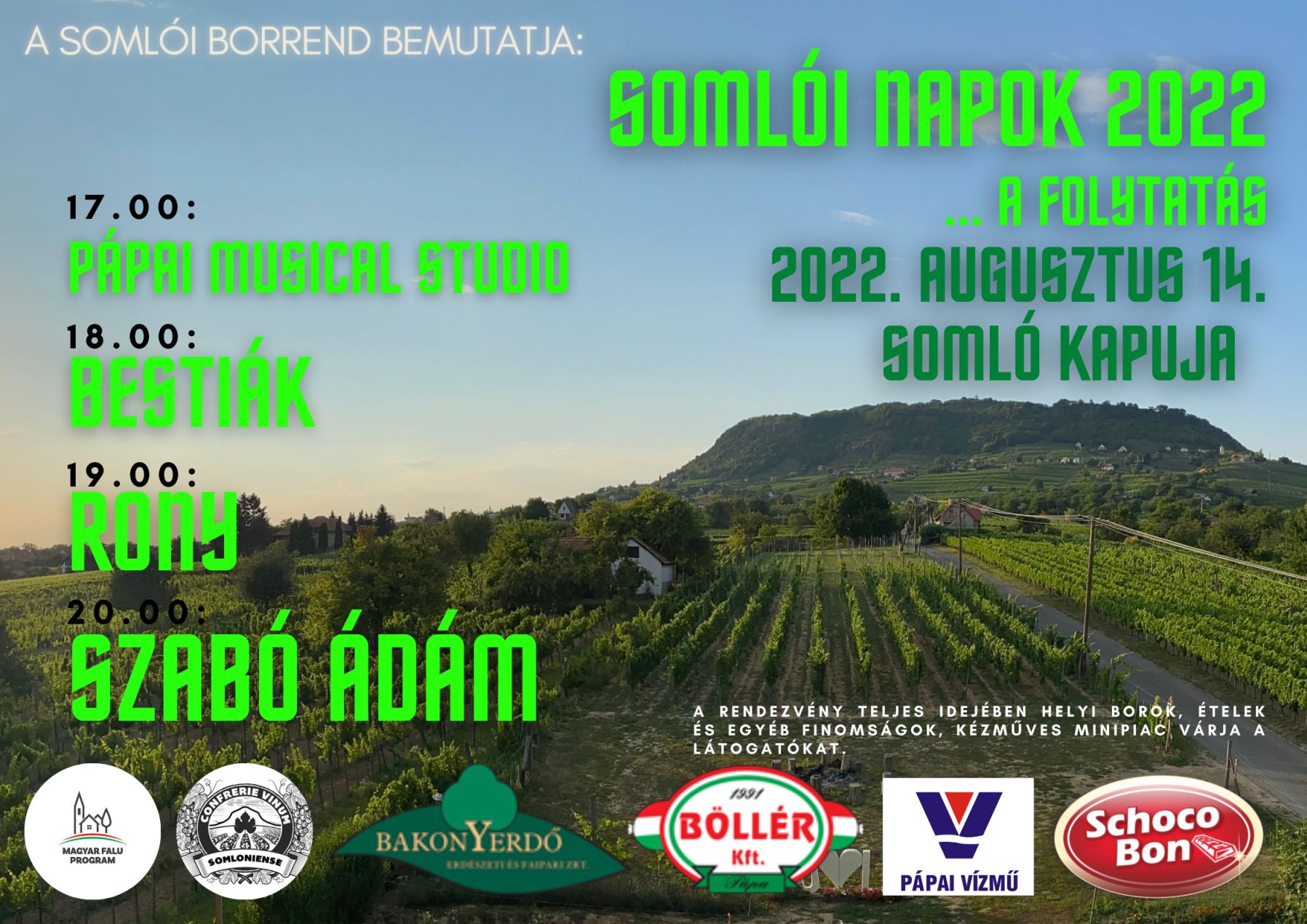 A Somlói Napok keretében délutántól késő estig zenés előadásokkal, koncertekkel várjuk az érdeklődőket programjainkon. A belépés ingyenes!
