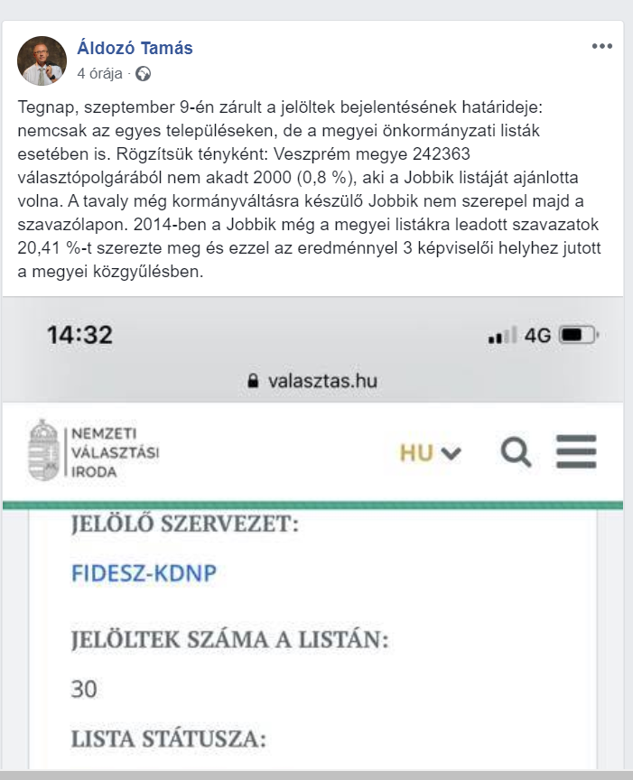 - A Jobbik természetesen - Áldozó Tamás bejegyzésével ellentétben - állított listát a megyei önkormányzat esetében is, mégpedig a törvények adta utolsó napon tette meg ezt. A jelenlegi fideszes polgármesterrel ellentétben ugyanis mi pontosan ismerjük a szabályokat és tudjuk mikor, mit lehet megtenni - fogalmazott Süle Zsolt.