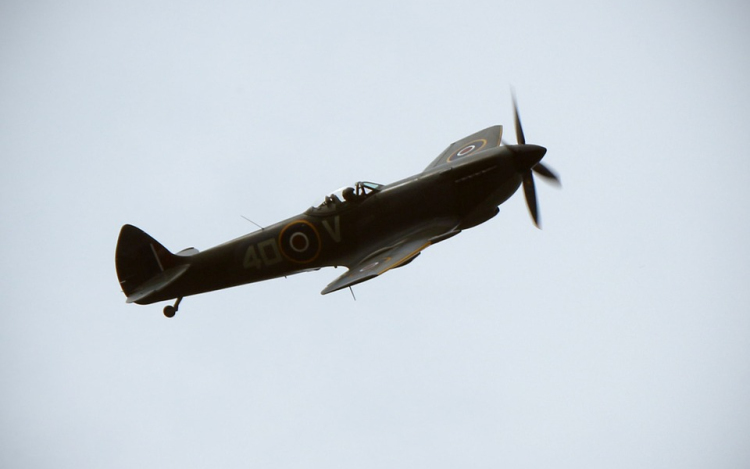 Az ünnepségen is repült, a Spitfire egy kétüléses változatában vitték fel.