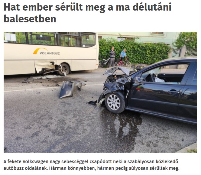 Olvasónktól kapott információk szerint a körforgalomból érkező gépkocsi vezetője elvesztette uralmát a gépkocsi felett és nagy sebességgel ütközött neki az autóbusz oldalának.