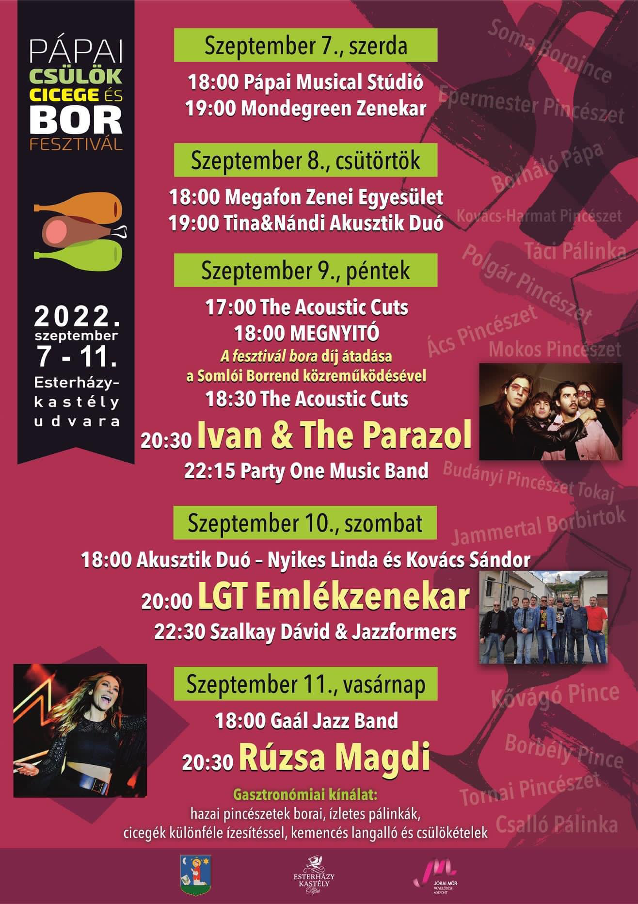 Cicege, csülök, langalló, megszámlálhatatlan féle bor és pálinka, valamint bőséges színpadi program - ezeket kínálja idén a Pápai Csülök Cicege és Borfesztivál, érdemes lesz tehát ellátogatni az Esterházy-kastély udvarára.