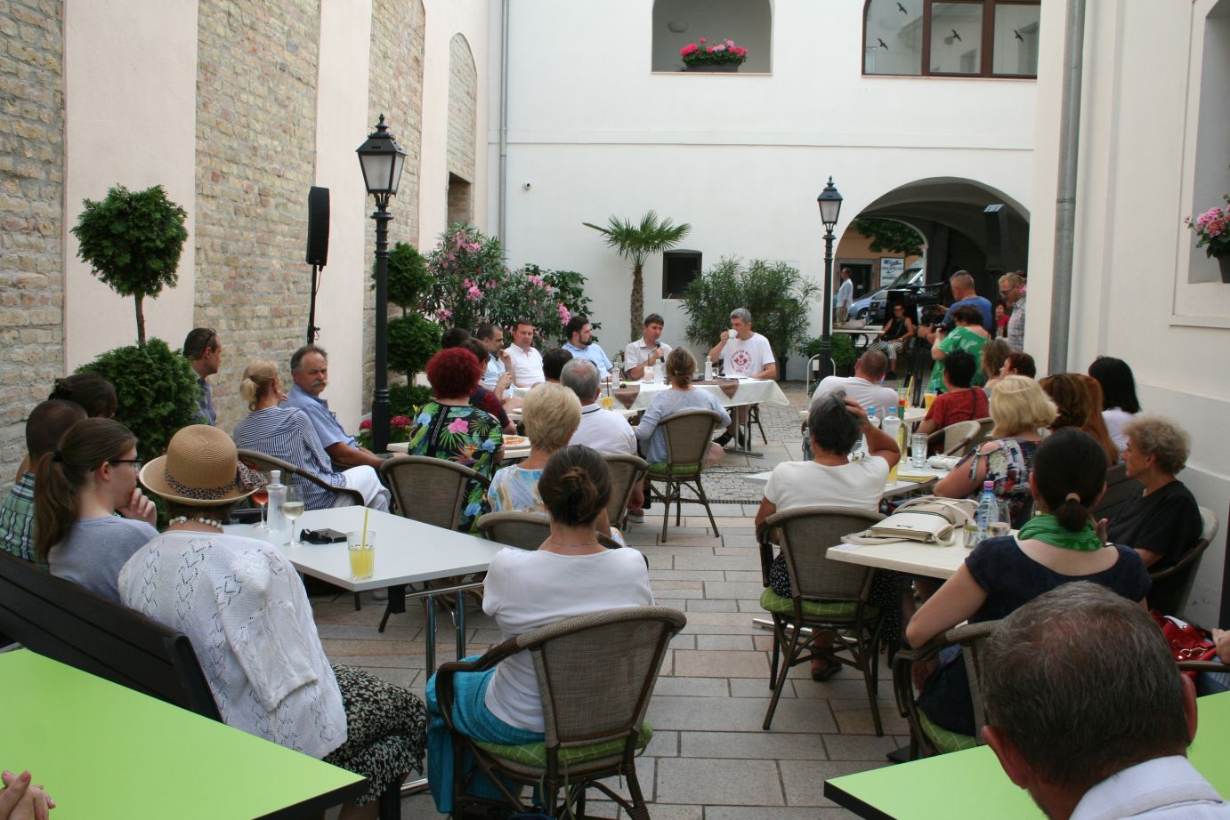 A szombat esti rendezvényen Boncz Zoltán baptista, Márkus Mihály református, Szabó Ferenc evangélikus, valamint Szíjártó László római katolikus lelkipásztorral beszélgethetett a szép számban összegyűlt közönség, a Pannonia Reformata Kávézó Ó-teraszán.